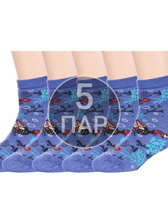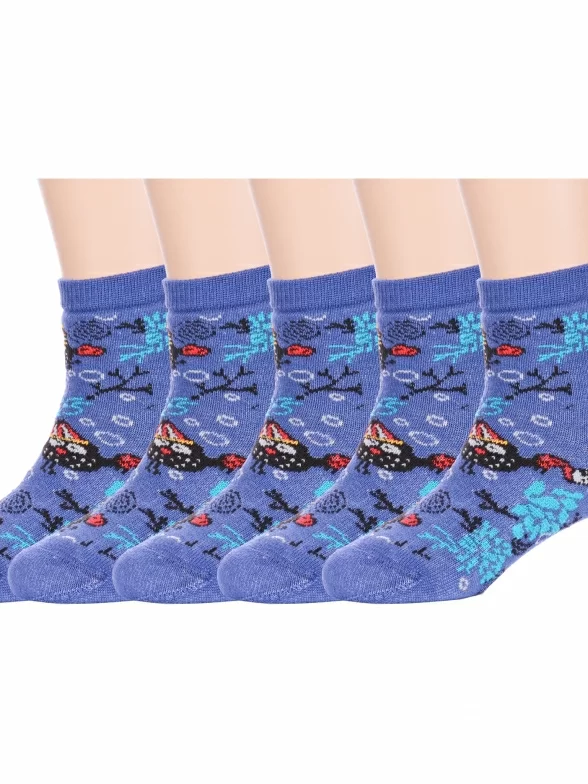 Комплект детских носков из 5 пар, межсезонные или зимние, укороченные, цвет темно-синие, теплые, с принтом, махровые, состав: 90% хлопок, 7% полиамид, 3% эластан (лайкра), арт. 5-Л92. Производитель «ИП Мурзаков В.А., Ставропольский край, Россия» под брендом «Lorenzline».