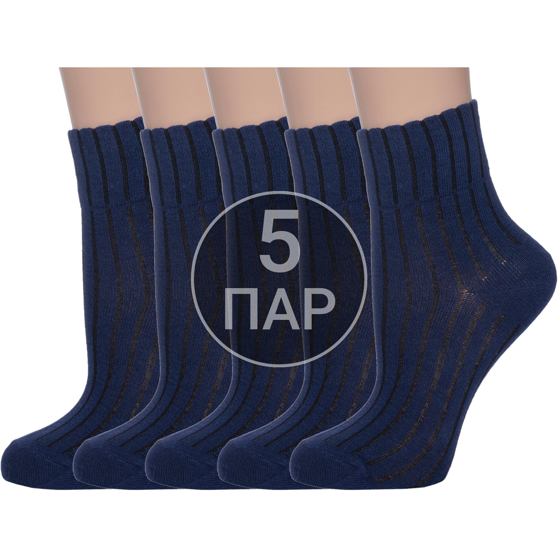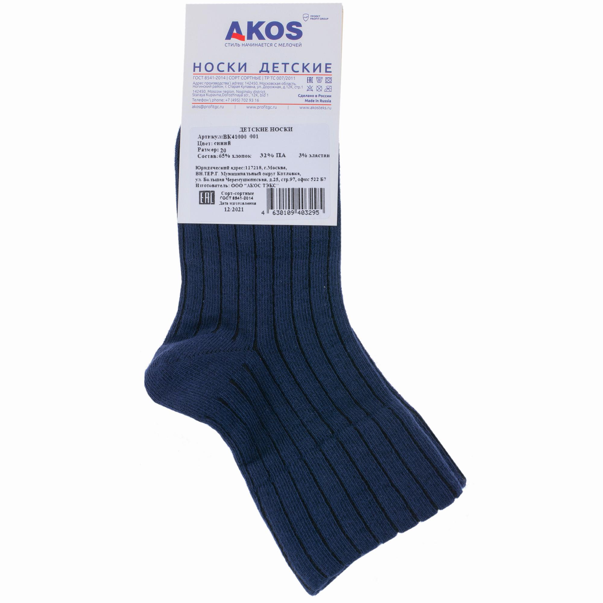Комплект детских носков из 5 пар, круглогодичные, укороченные, цвет синие, классические, шов обычный (не бесшовные), принт (рисунок): полоски, в рубчик, с узором, состав: 65% хлопок, 32% полиамид, 3% эластан, арт. 5-ВК41000 001. Производитель «ООО «АКОС ТЭКС», Московская область, Россия» под брендом «Akos».