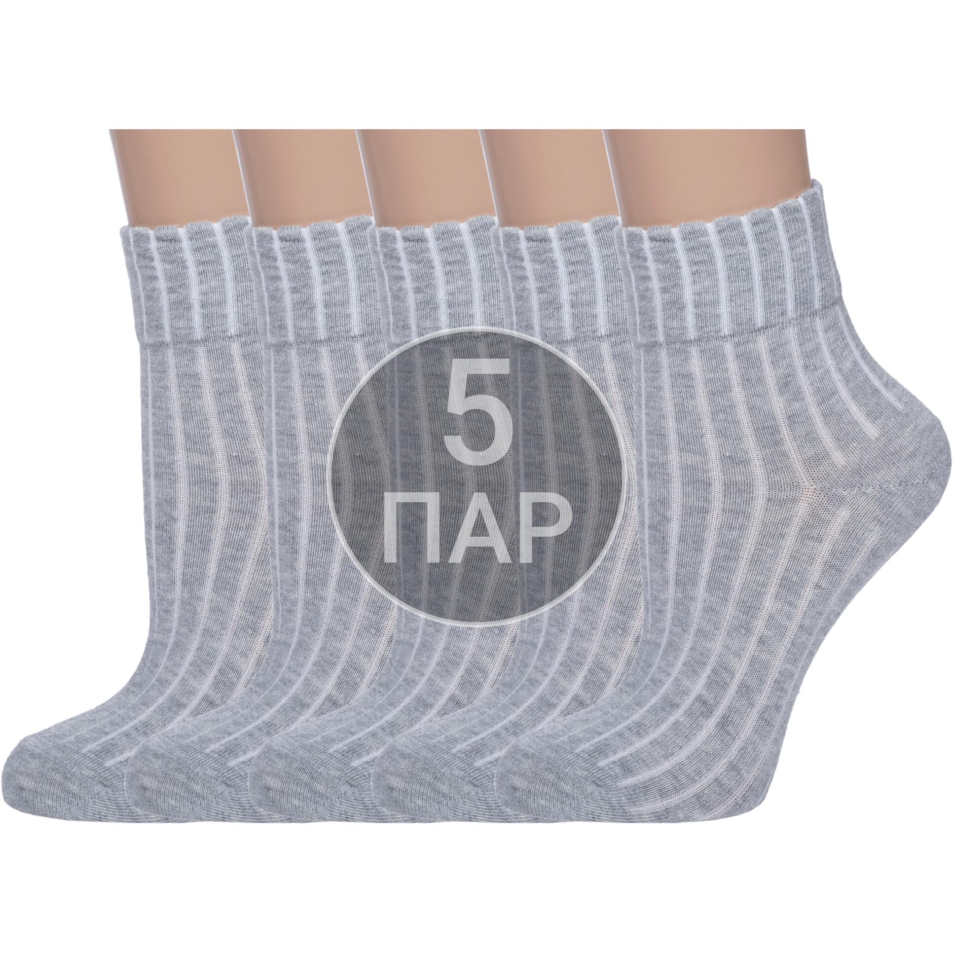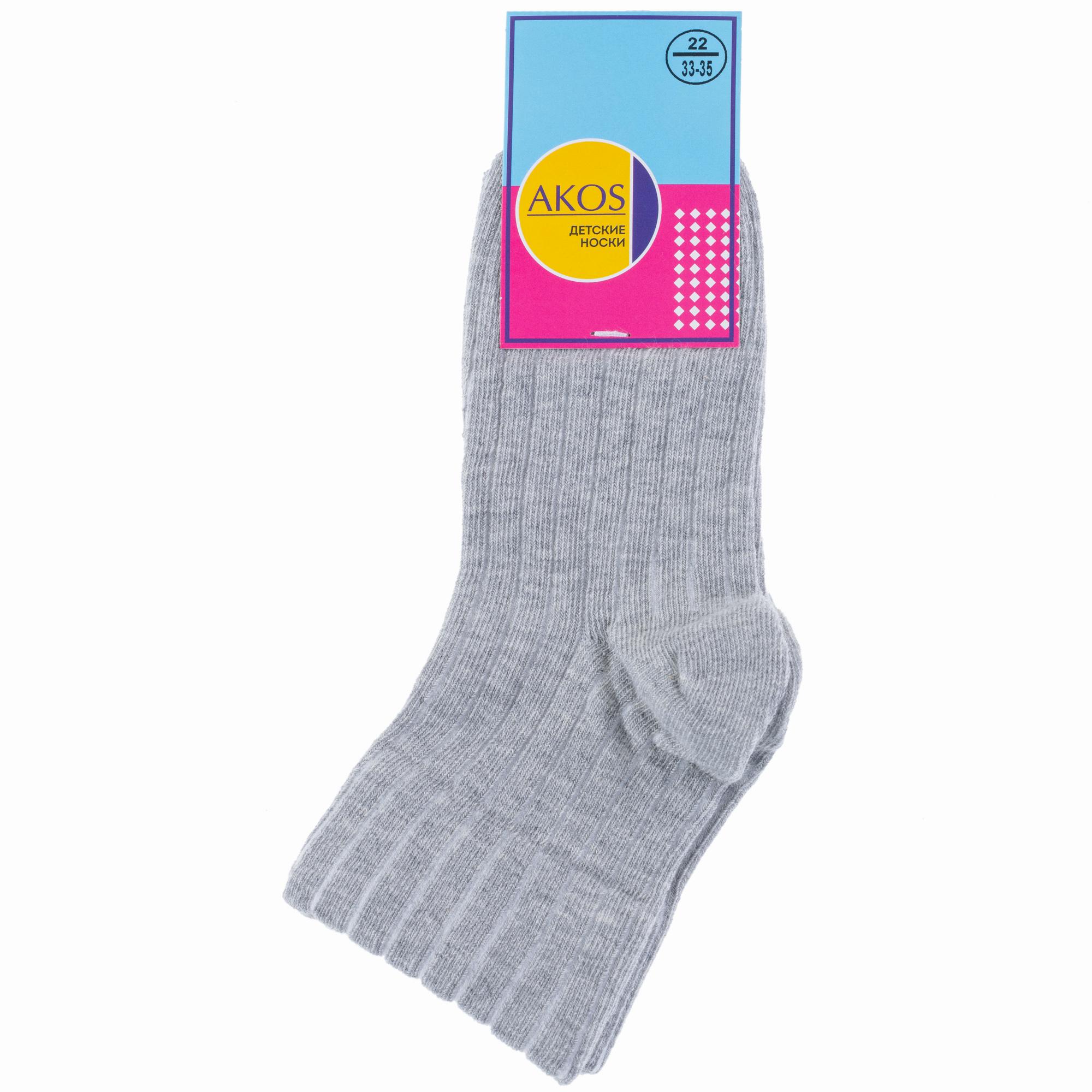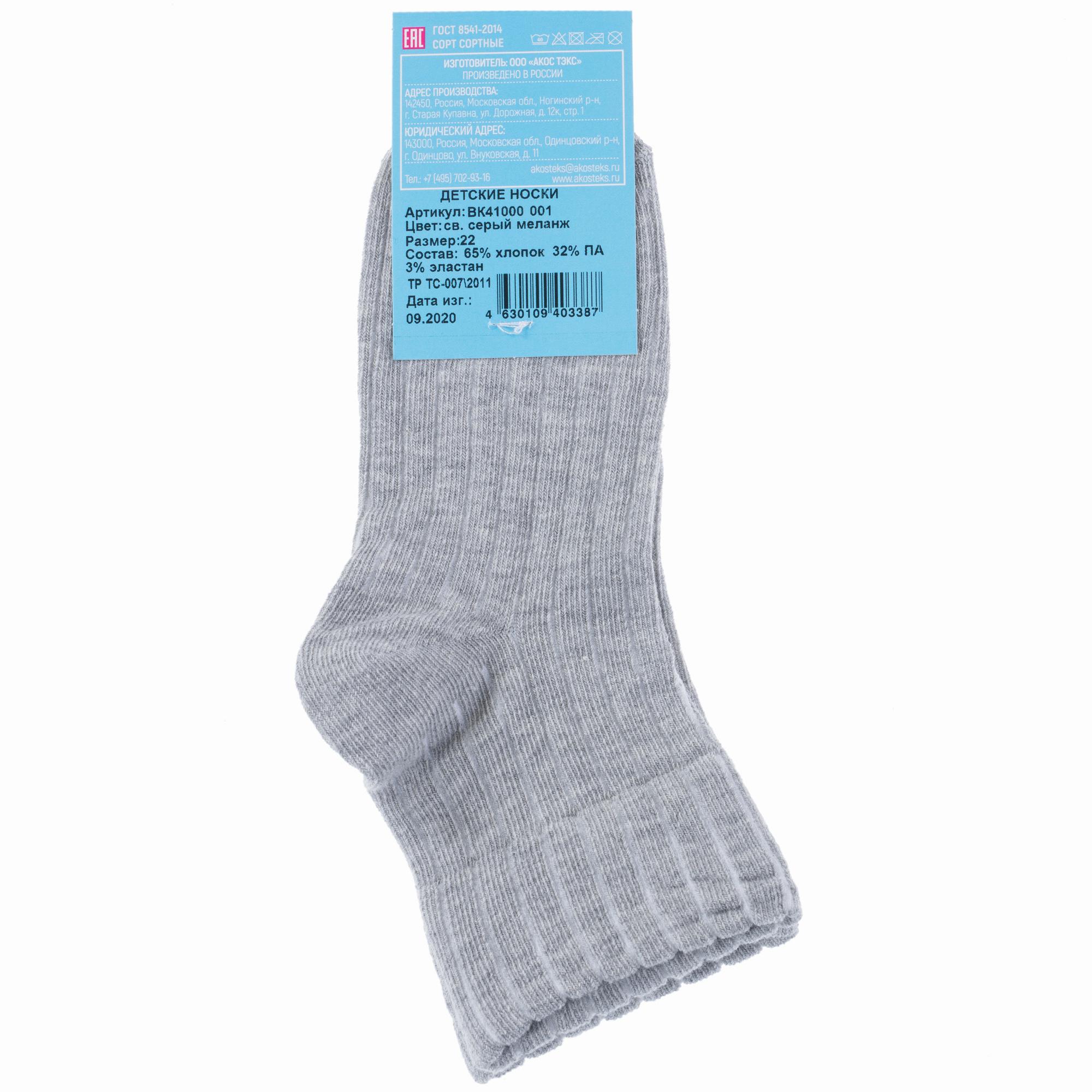 Комплект детских носков из 5 пар, круглогодичные, укороченные, цвет светло-серый меланж, классические, шов обычный (не бесшовные), принт (рисунок): полоски, в рубчик, с узором, состав: 65% хлопок, 32% полиамид, 3% эластан, арт. 5-ВК41000 001. Производитель «ООО «АКОС ТЭКС», Московская область, Россия» под брендом «Akos».