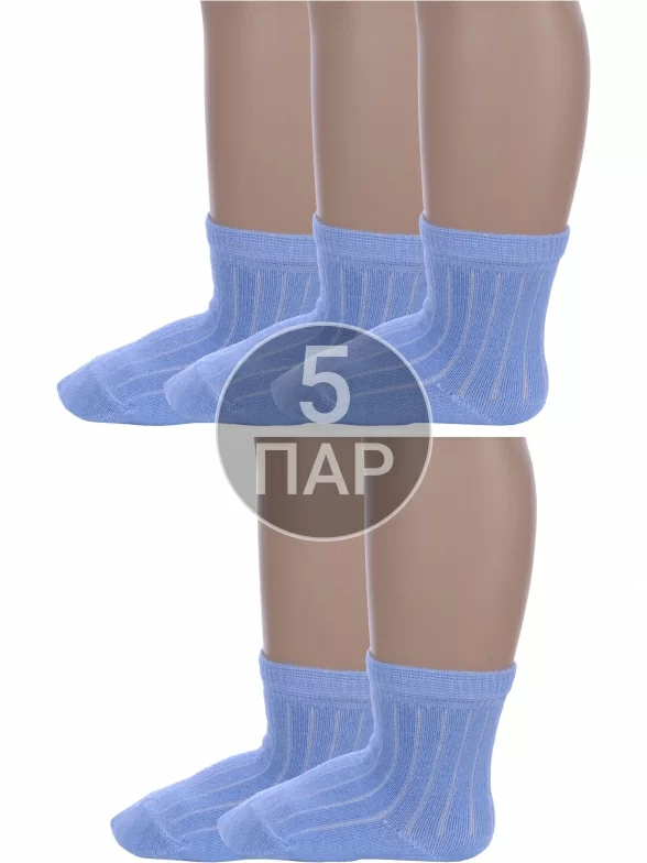 Комплект детских носков из 5 пар, круглогодичные, укороченные, цвет голубой, классические, шов обычный (не бесшовные), принт (рисунок): в рубчик, однотонный, состав: 90% хлопок, 8% полиамид, 2% эластан, арт. 5-М20. Производитель «ООО Альтаир, г. Орск, Оренбургская обл, Россия» под брендом «Альтаир».