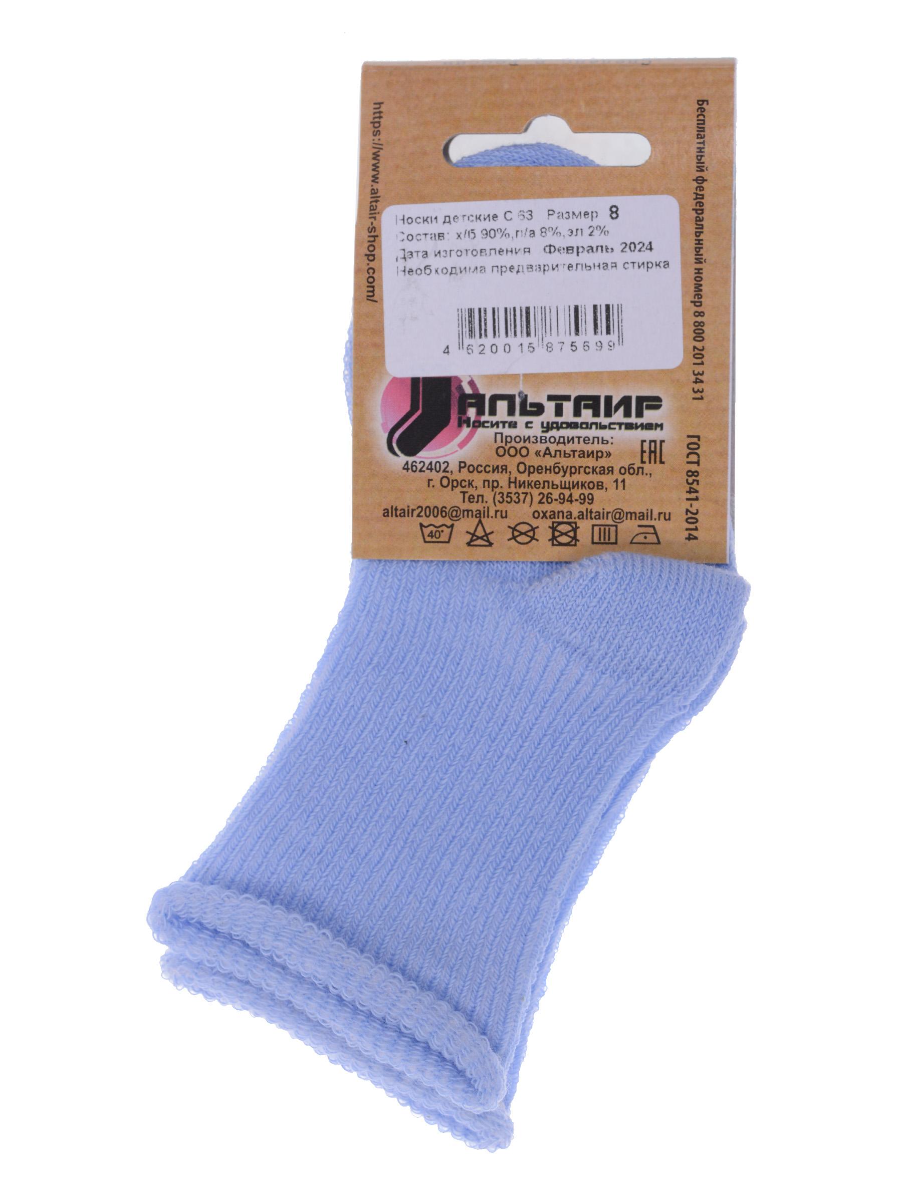 Комплект детских носков из 5 пар, круглогодичные, укороченные, цвет голубой, медицинские, классические, шов обычный (не бесшовные), принт (рисунок): в рубчик, однотонный, с узором, состав: 90% хлопок, 8% полиамид, 2% эластан, арт. 5-С63. Производитель «ООО Альтаир, г. Орск, Оренбургская обл, Россия» под брендом «Альтаир».