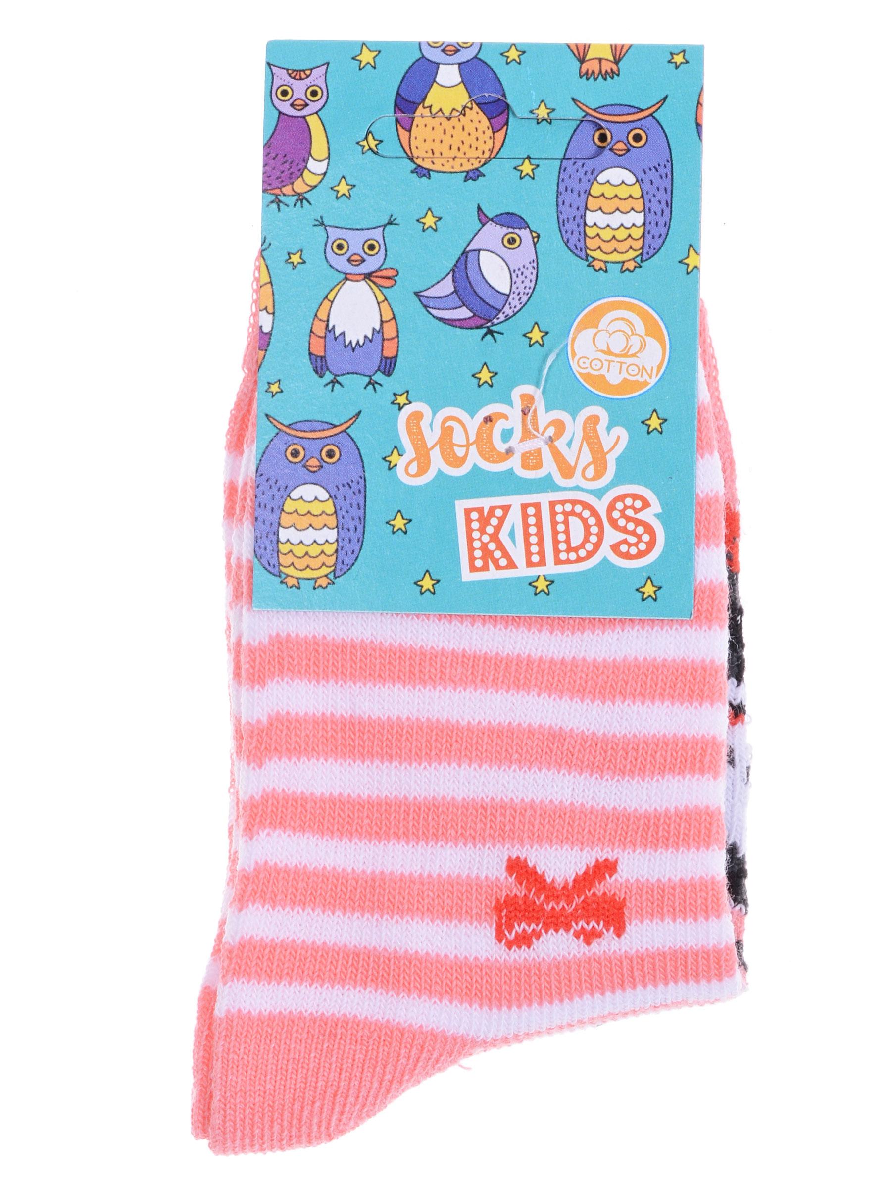 Комплект детских носков из 5 пар, круглогодичные, укороченные, цвет коралловый, повседневные, возможно бесшовные, принт (рисунок): полоски, животные, бабочки / бантики, с узором, крупные контрастные рисунки, состав: 82% хлопок, 16% полиамид, 2% эластан, арт. 5-С143. Производитель «ООО Альтаир, г. Орск, Оренбургская обл, Россия» под брендом «Альтаир».