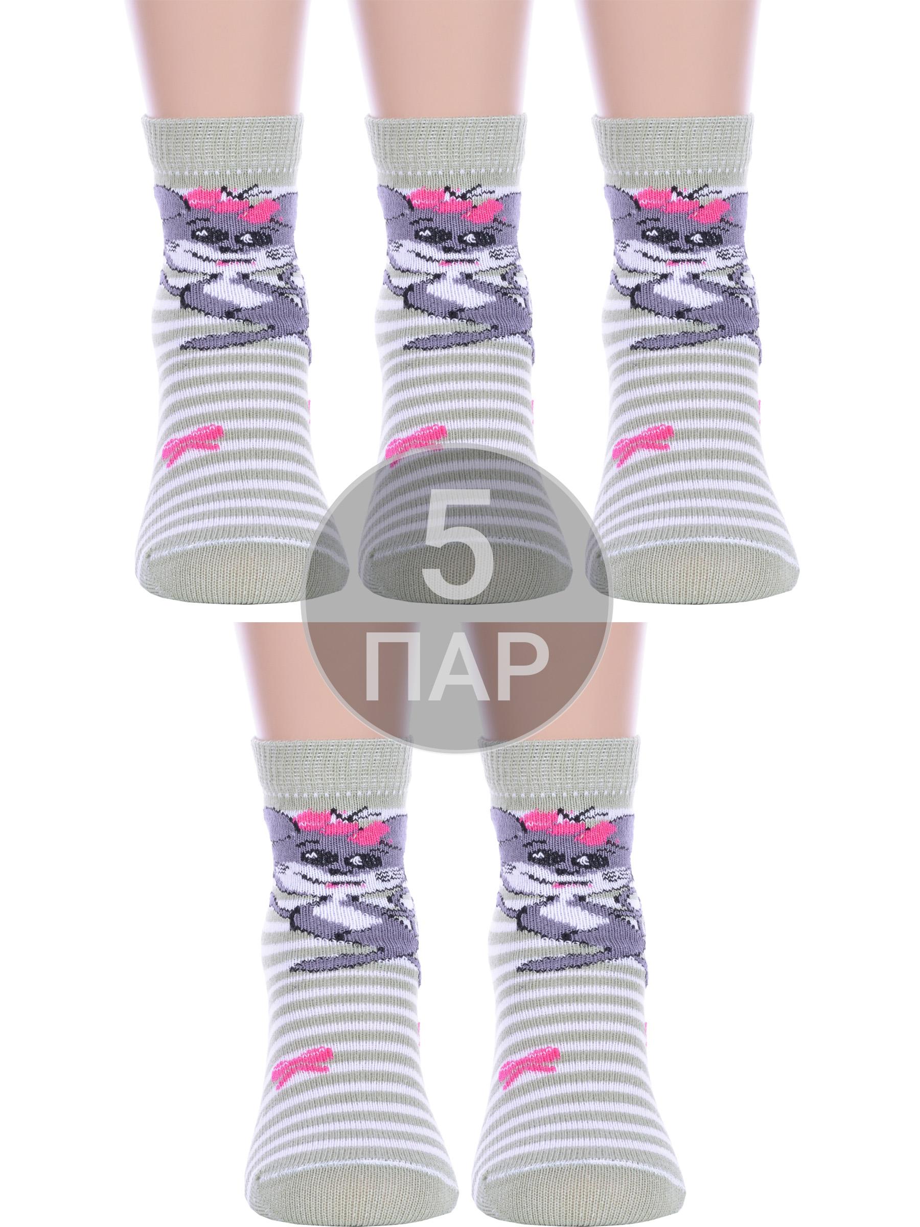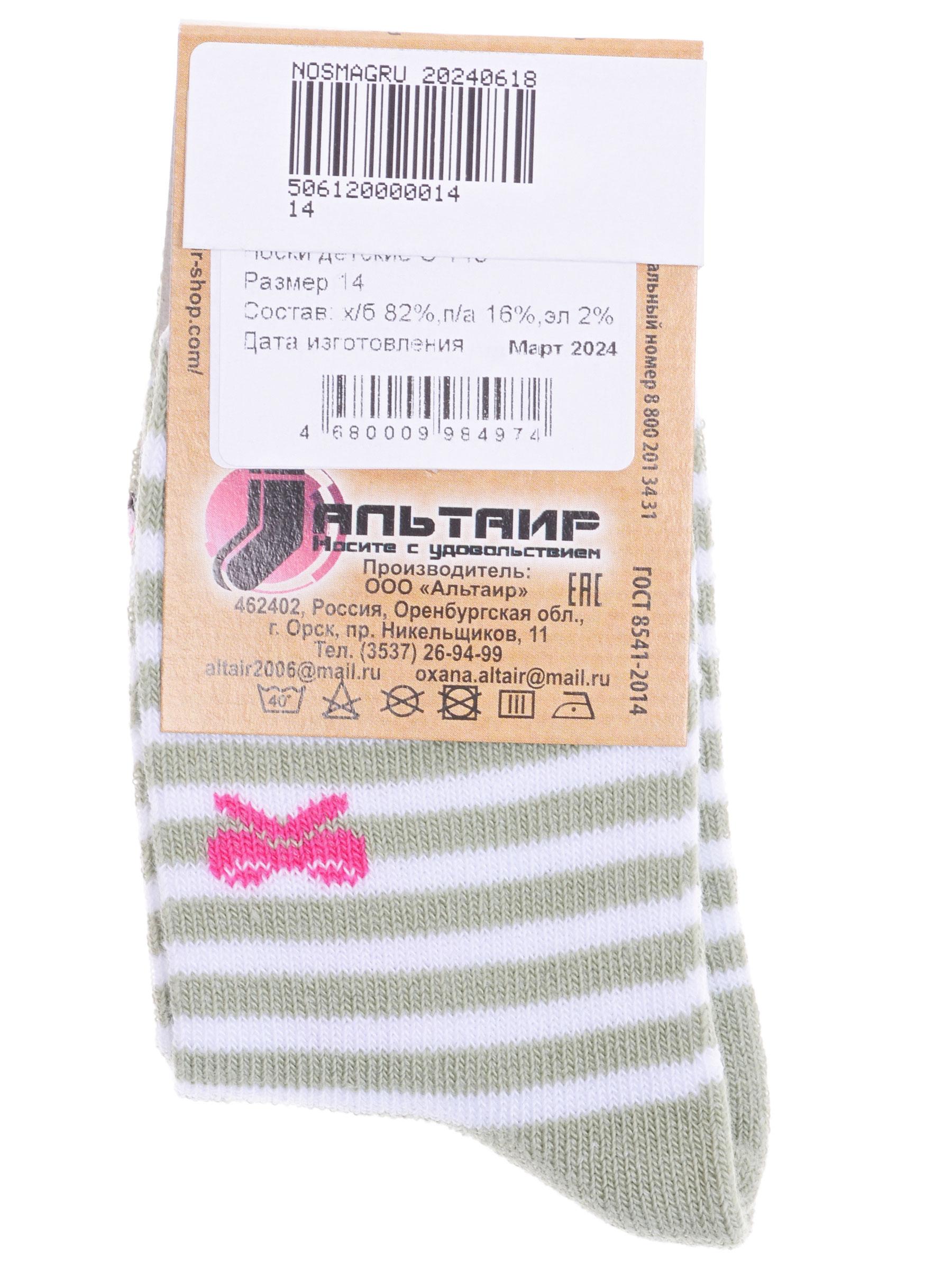 Комплект детских носков из 5 пар, круглогодичные, укороченные, цвет оливковый, повседневные, возможно бесшовные, принт (рисунок): полоски, животные, бабочки / бантики, с узором, крупные контрастные рисунки, состав: 82% хлопок, 16% полиамид, 2% эластан, арт. 5-С143. Производитель «ООО Альтаир, г. Орск, Оренбургская обл, Россия» под брендом «Альтаир».