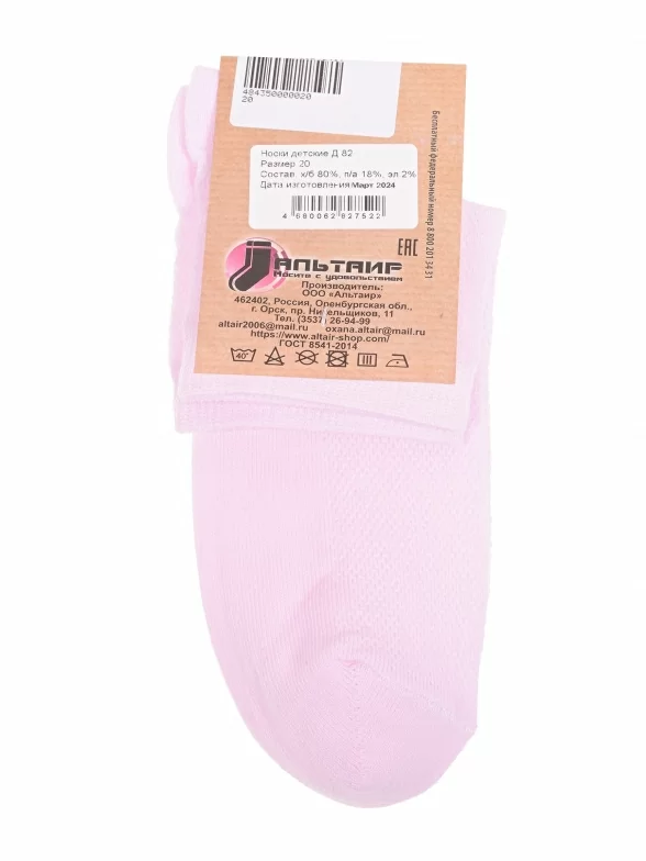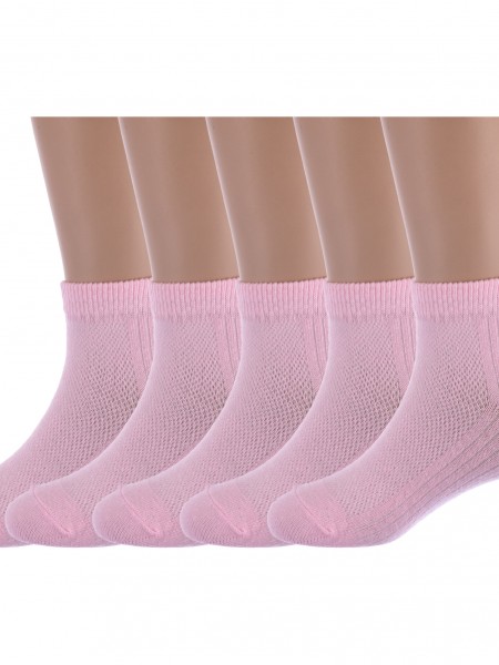 Комплект детских носков из 5 пар, летние, укороченные, цвет светло-розовый, в сеточку, классические, возможно бесшовные, принт (рисунок): однотонный, без рисунков/узоров, состав: 80% хлопок, 18% полиамид, 2% эластан, арт. 5-Д82. Производитель «ООО Альтаир, г. Орск, Оренбургская обл, Россия» под брендом «Альтаир».