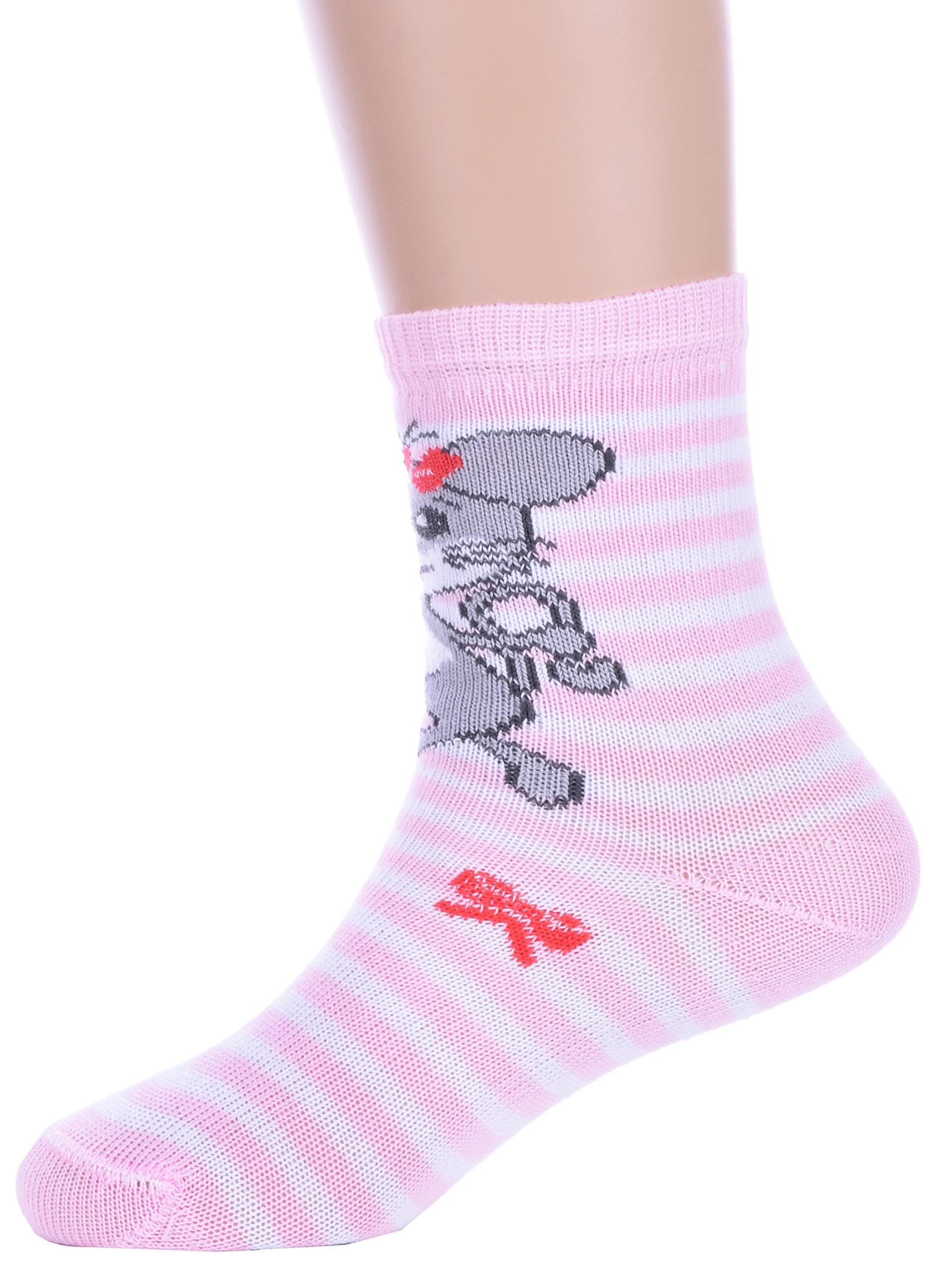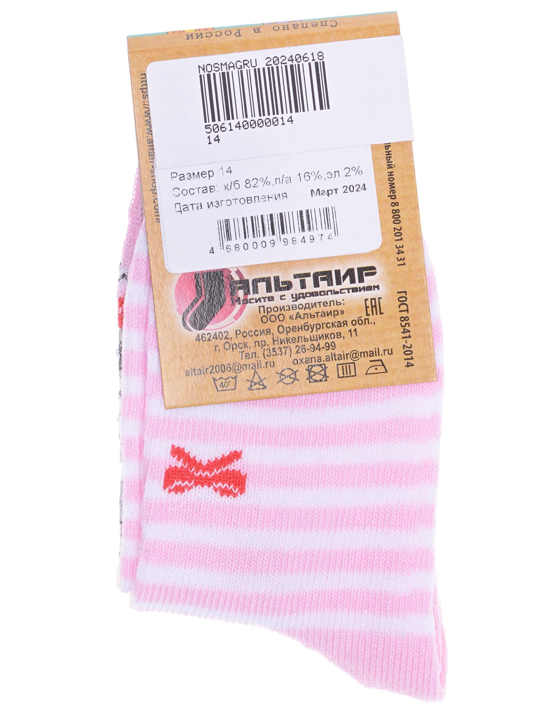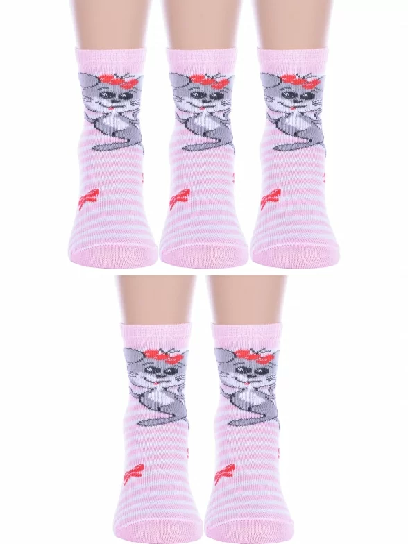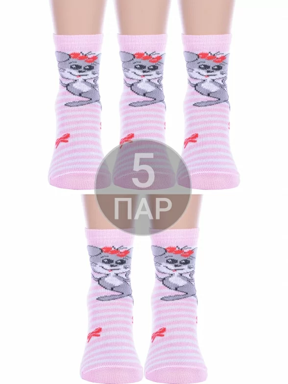 Комплект детских носков из 5 пар, круглогодичные, укороченные, цвет светло-розовый, повседневные, возможно бесшовные, принт (рисунок): полоски, животные, бабочки / бантики, с узором, крупные контрастные рисунки, состав: 82% хлопок, 16% полиамид, 2% эластан, арт. 5-С143. Производитель «ООО Альтаир, г. Орск, Оренбургская обл, Россия» под брендом «Альтаир».