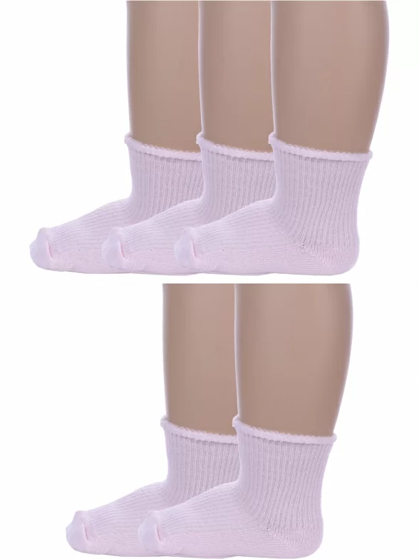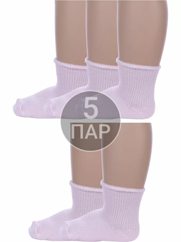 Комплект детских носков из 5 пар, круглогодичные, укороченные, цвет светло-розовый, классические, медицинские, шов обычный (не бесшовные), принт (рисунок): однотонный, в рубчик, с узором, состав: 90% хлопок, 8% полиамид, 2% эластан, арт. 5-С63. Производитель «ООО Альтаир, г. Орск, Оренбургская обл, Россия» под брендом «Альтаир».