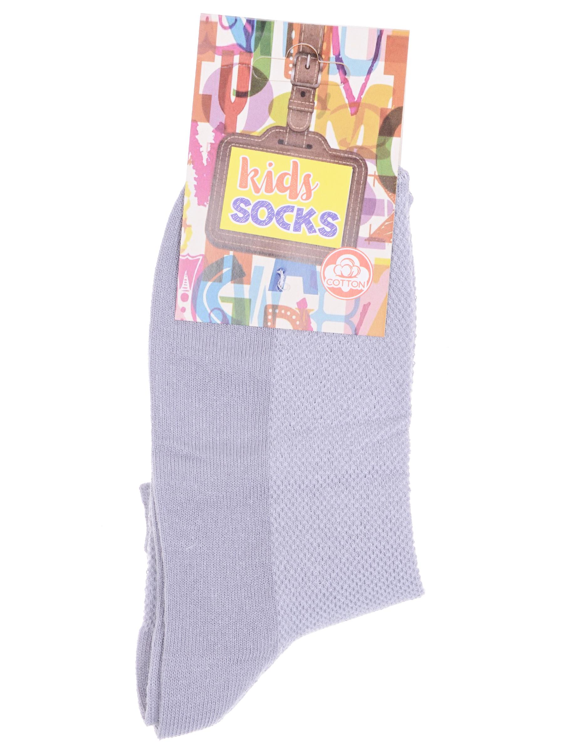 Комплект детских носков из 5 пар, летние, укороченные, цвет светло-серый, в сеточку, классические, возможно бесшовные, принт (рисунок): однотонный, без рисунков/узоров, состав: 80% хлопок, 18% полиамид, 2% эластан, арт. 5-Д82. Производитель «ООО Альтаир, г. Орск, Оренбургская обл, Россия» под брендом «Альтаир».
