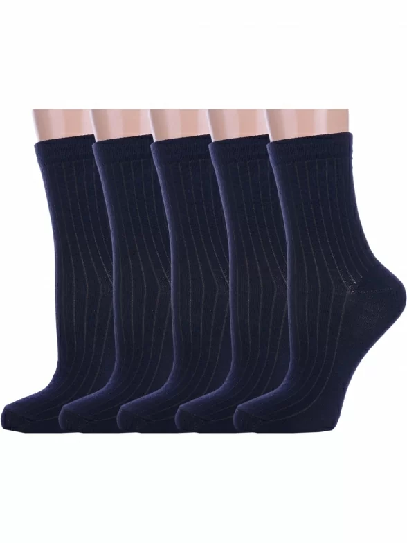 Комплект детских носков из 5 пар, круглогодичные, укороченные, цвет темно-синие, классические, шов обычный (не бесшовные), принт (рисунок): в рубчик, однотонный, без рисунков/узоров, состав: 82% хлопок, 16% полиамид, 2% эластан, арт. 5-М20. Производитель «ООО Альтаир, г. Орск, Оренбургская обл, Россия» под брендом «Альтаир».