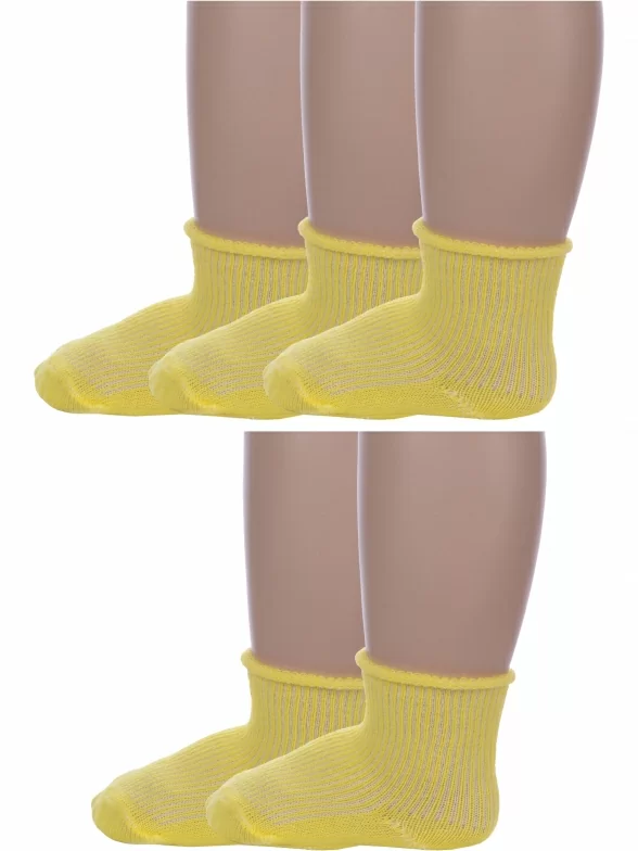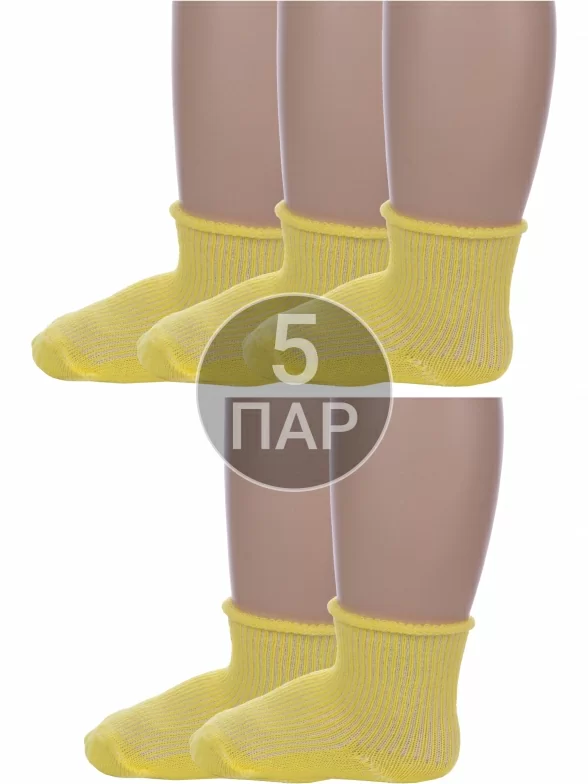Комплект детских носков из 5 пар, круглогодичные, укороченные, цвет желтый, медицинские, классические, шов обычный (не бесшовные), принт (рисунок): однотонный, с узором, в рубчик, состав: 90% хлопок, 8% полиамид, 2% эластан, арт. 5-С63. Производитель «ООО Альтаир, г. Орск, Оренбургская обл, Россия» под брендом «Альтаир».