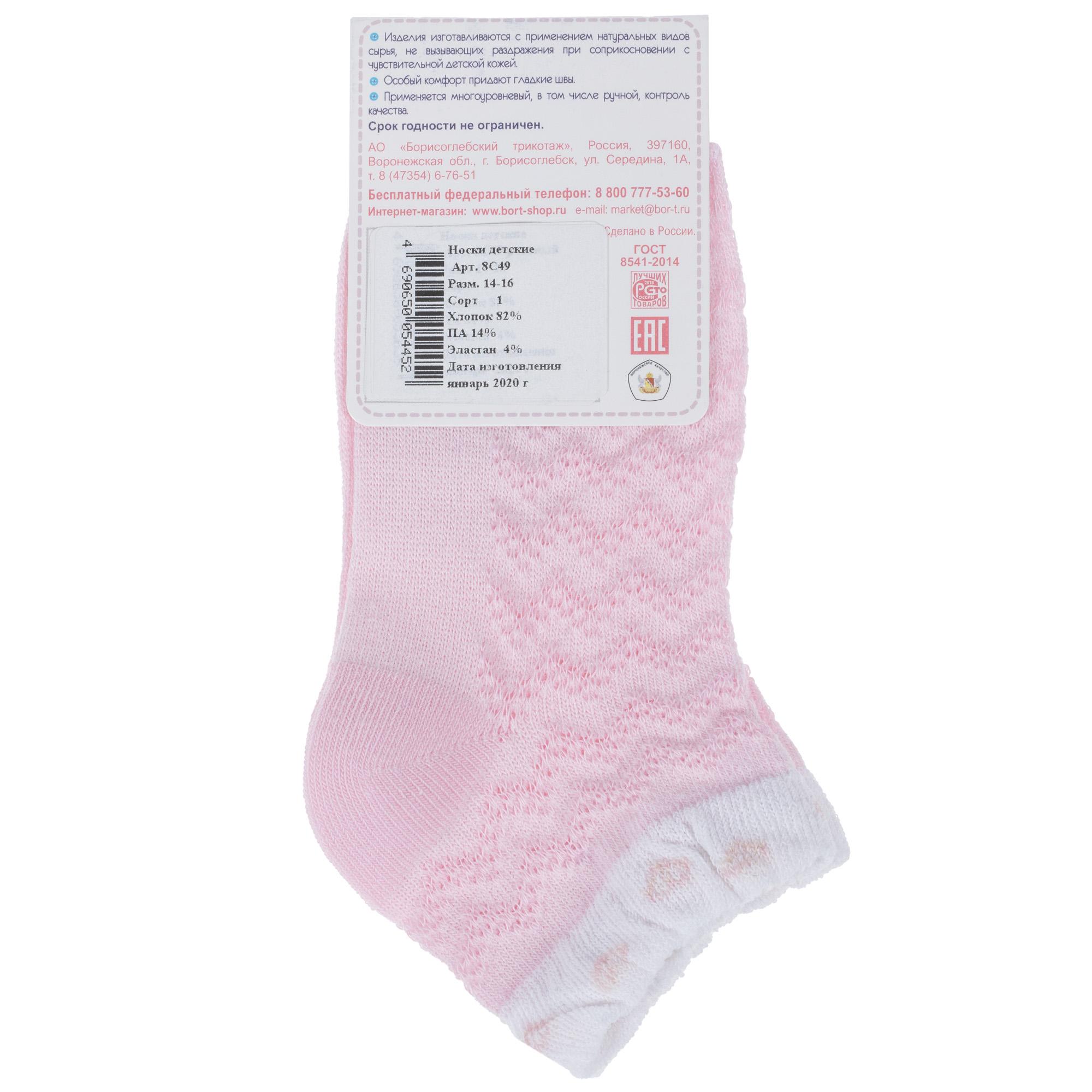 Комплект детских носков из 5 пар, летние, укороченные, цвет розовый, ажурные, состав: 82% хлопок, 14% полиамид, 4% эластан, фабричный артикул 5-8С49. Производитель «АО Борисоглебский трикотаж, Воронежская обл, Россия» под брендом «Борисоглебский трикотаж».