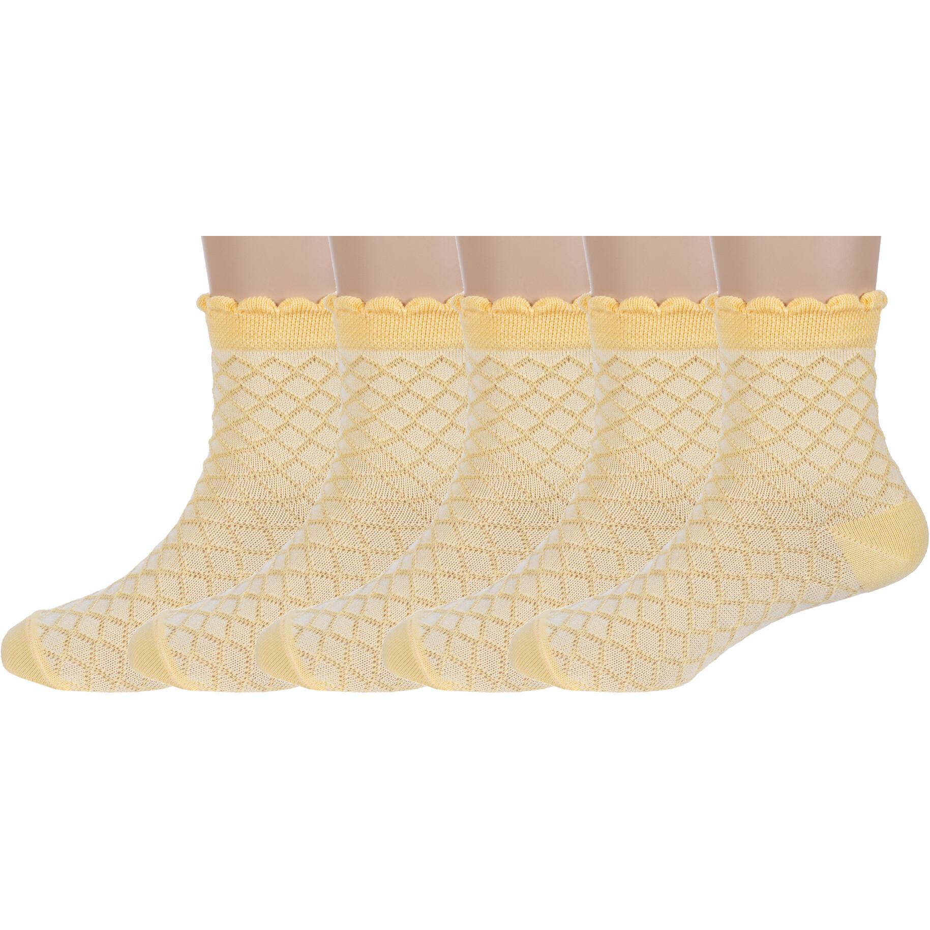 Комплект детских носков из 5 пар, летние, укороченные, цвет желтый, ажурные, состав: 85% хлопок, 12% полиамид, 3% эластан, фабричный артикул 5-8С989. Производитель «АО Борисоглебский трикотаж, Воронежская обл, Россия» под брендом «Борисоглебский трикотаж».