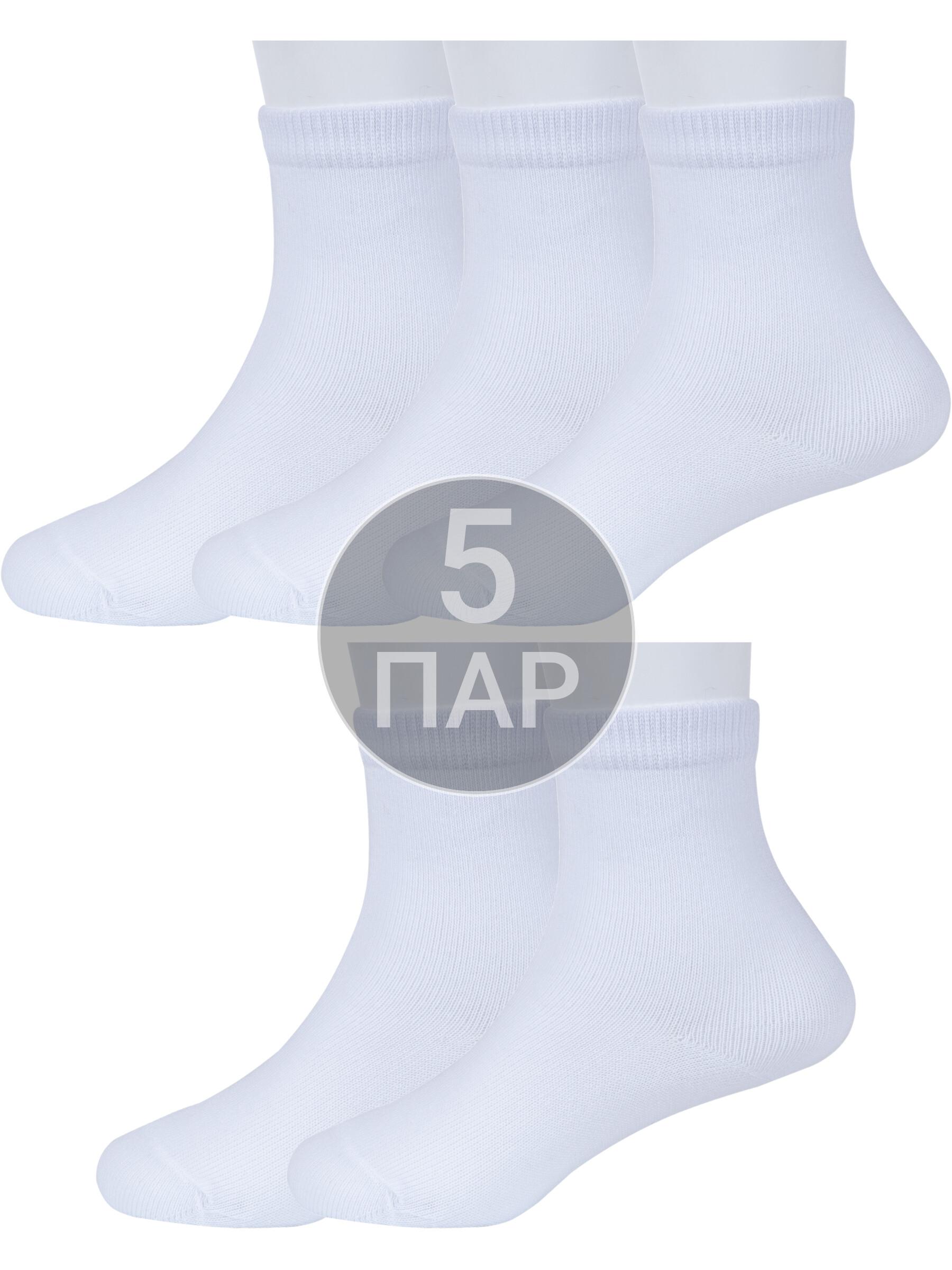 Комплект детских носков из 5 пар, круглогодичные, укороченные, цвет белый, классические, шов обычный (не бесшовные), принт (рисунок): без рисунков/узоров, однотонный, состав: 74% хлопок, 24% полиамид, 2% эластан, арт. 5-С765. Производитель «ГАММА» Россия под брендом «Гамма».