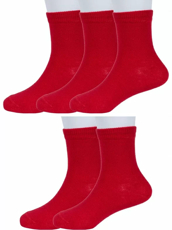 Комплект детских носков из 5 пар, круглогодичные, укороченные, цвет красный, классические, шов обычный (не бесшовные), принт (рисунок): без рисунков/узоров, однотонный, состав: 74% хлопок, 24% полиамид, 2% эластан, арт. 5-С765. Производитель «ГАММА» Россия под брендом «Гамма».