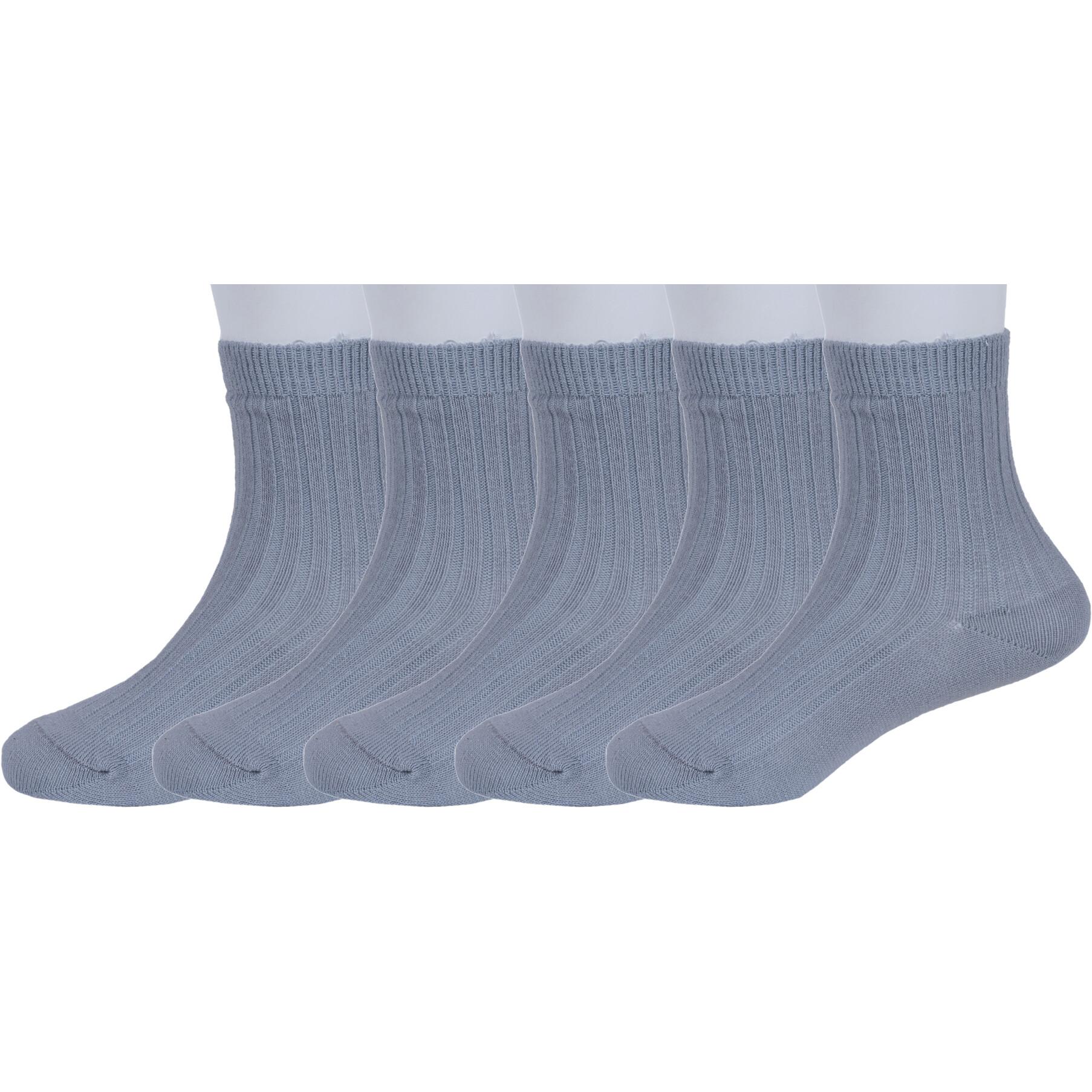Комплект детских носков из 5 пар, круглогодичные, укороченные, цвет светло-серый, классические, шов обычный (не бесшовные), принт (рисунок): в рубчик, однотонный, состав: 74% хлопок, 24% полиамид, 2% эластан, арт. 5-С1583. Производитель «ГАММА» Россия под брендом «Гамма».