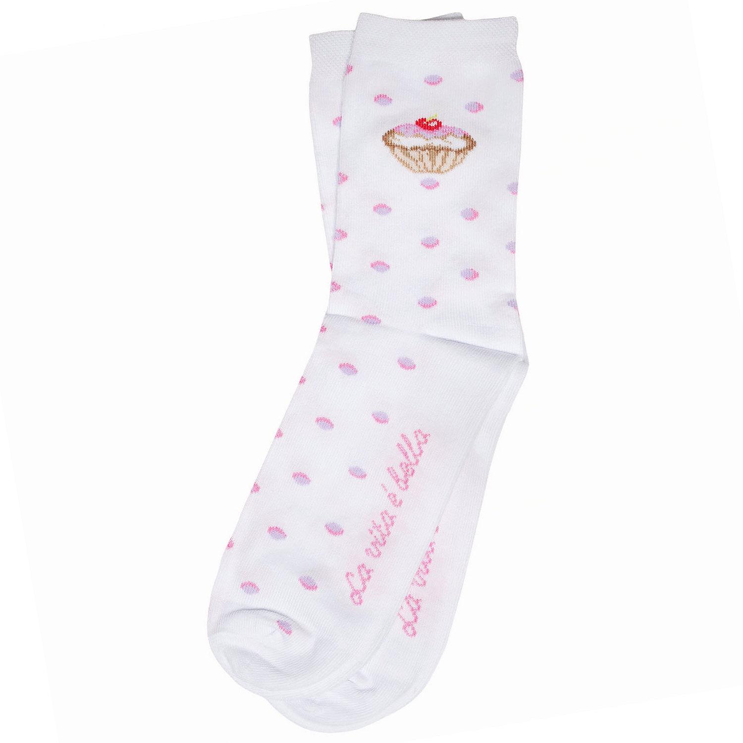 Комплект детских носков бренда XOX с принтом в виде пирожного и надписью на нижней части следа на итальянском языке "Жизнь прекрасна".