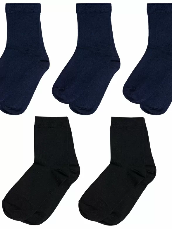 В комплект входят 5 пар носков с индивидуальными фабричными этикетками: 2 пары черного цвета и 3 - темно-синего.