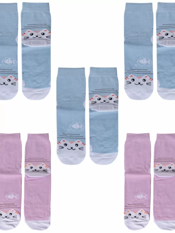 Комплект детских носков бренда XOX с принтом в виде котика на мыске и на пятке.