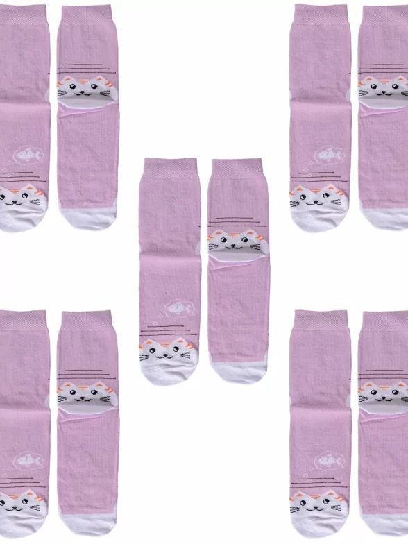 В комплект входят 5 пар сиреневых носков артикула D-3R12 с индивидуальными фабричными этикетками.