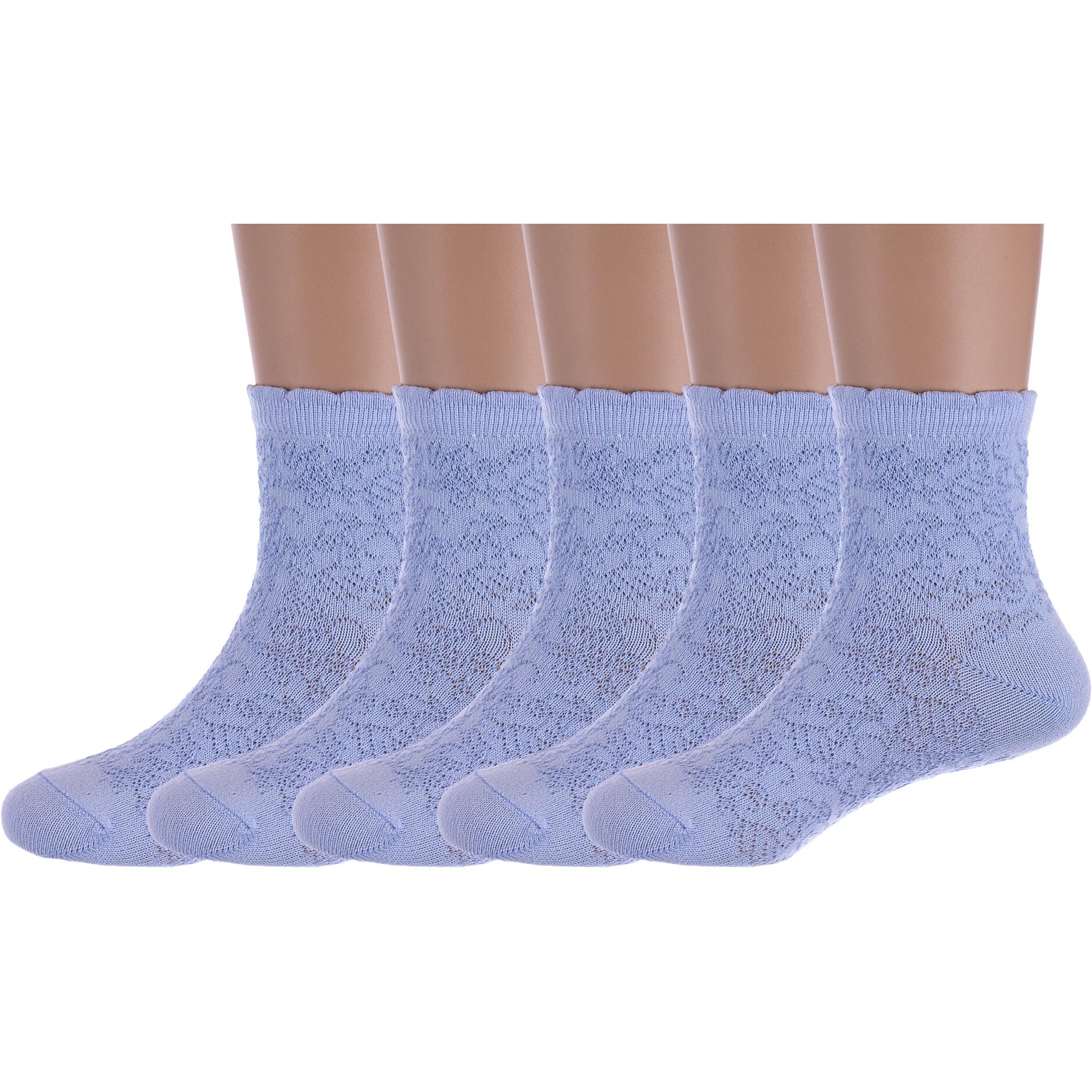Комплект детских носков из 5 пар, летние, укороченные, цвет голубой, ажурные, состав: 77% хлопок, 18% полиамид, 5% эластан, фабричный артикул 5-С-520. Производитель «КРАСНАЯ ВЕТКА» Россия под брендом «Красная ветка».