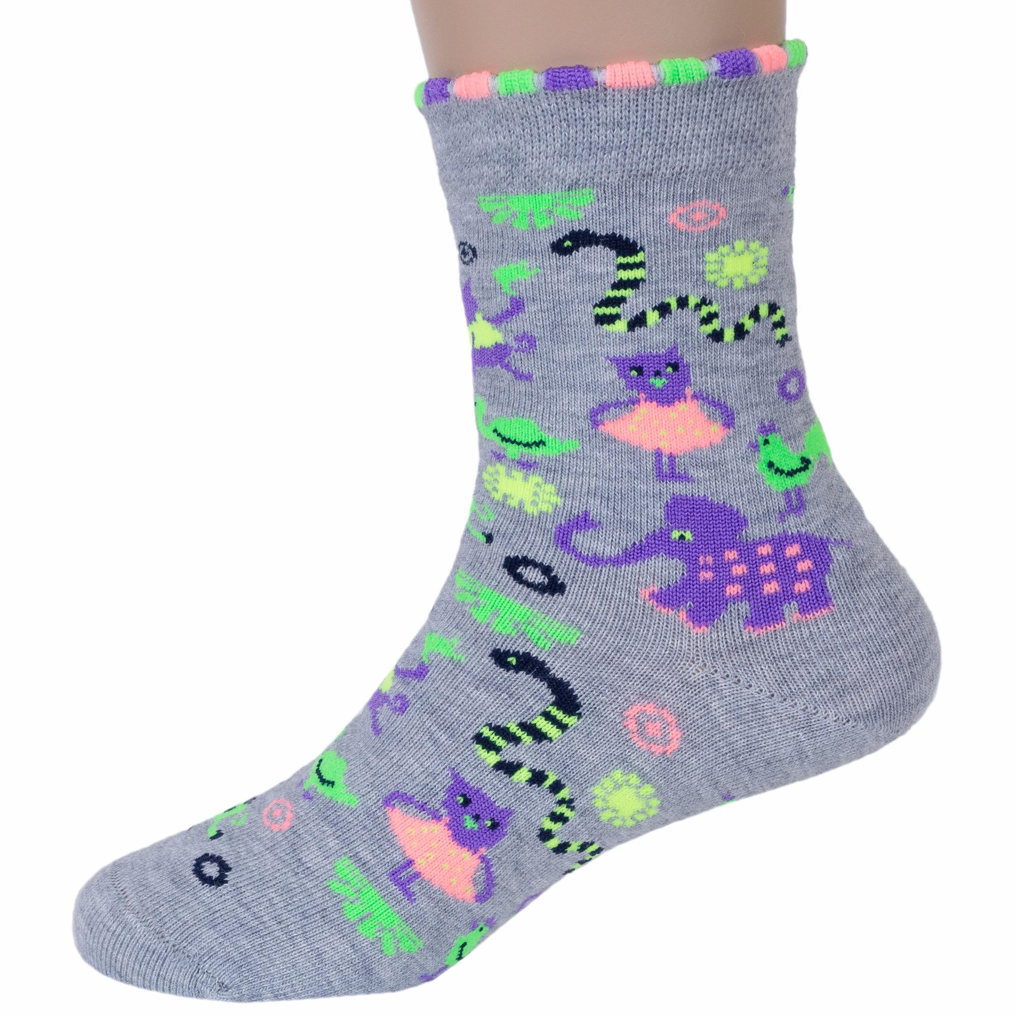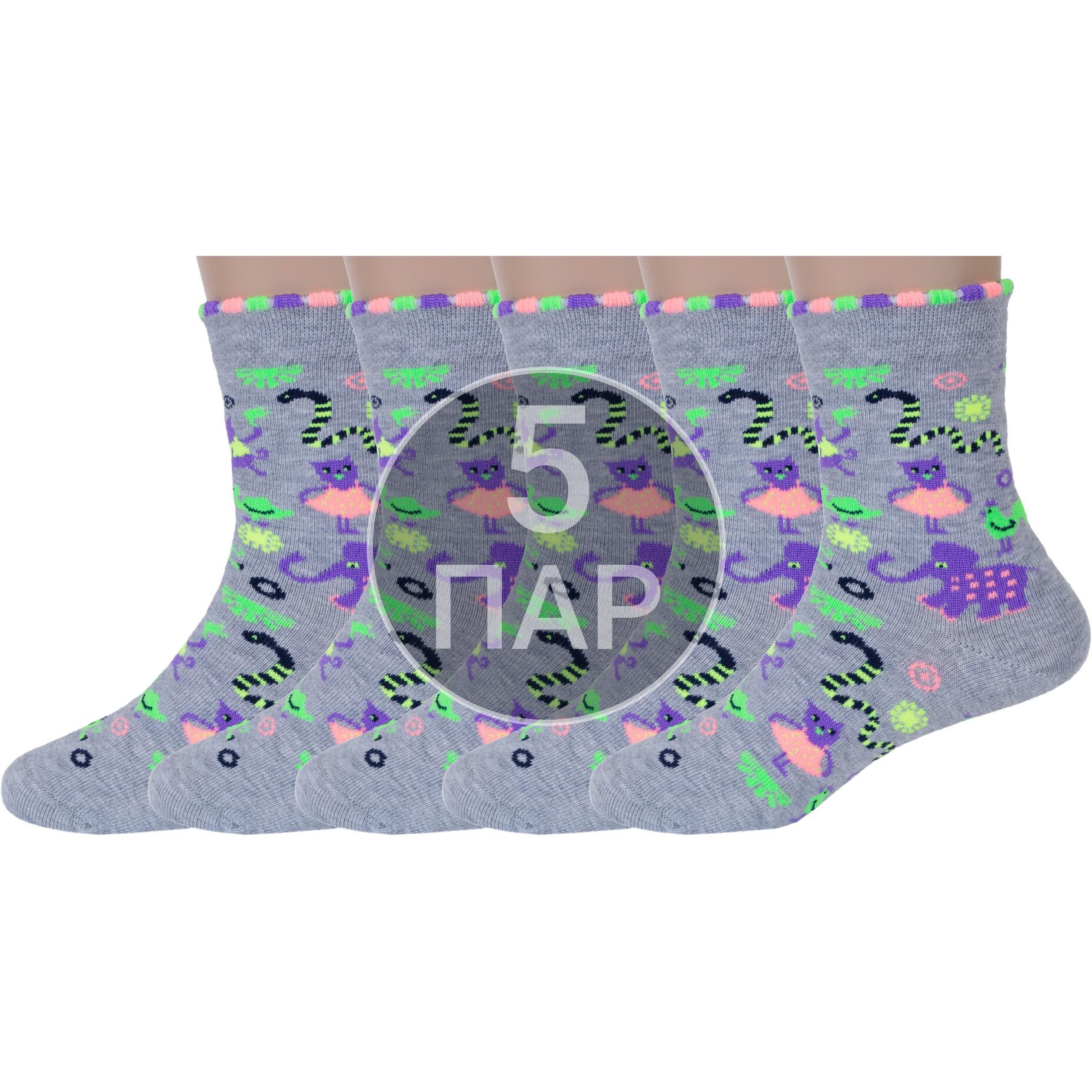 Комплект детских носков из 5 пар, круглогодичные, укороченные, цвет серый, повседневные, возможно бесшовные, принт (рисунок): животные, с узором, крупные контрастные рисунки, состав: 70% хлопок, 24% полиамид, 6% эластан, арт. 5-С-1701. Производитель «КРАСНАЯ ВЕТКА» Россия под брендом «Красная ветка».