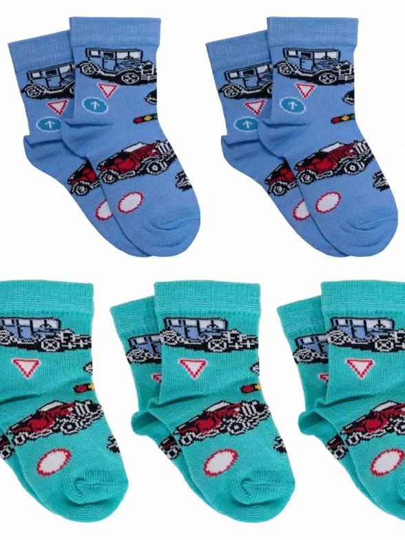 Комплект детских носков бренда LORENZline с принтом в виде машинок.