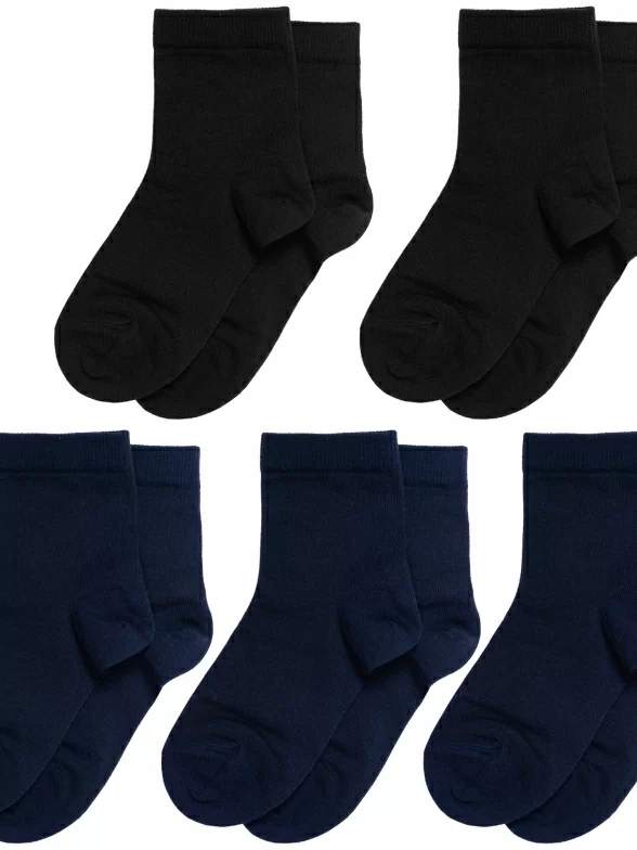 В комплект входят 5 пар с индивидуальными этикетками: 3 темно-синих и 2 черных.