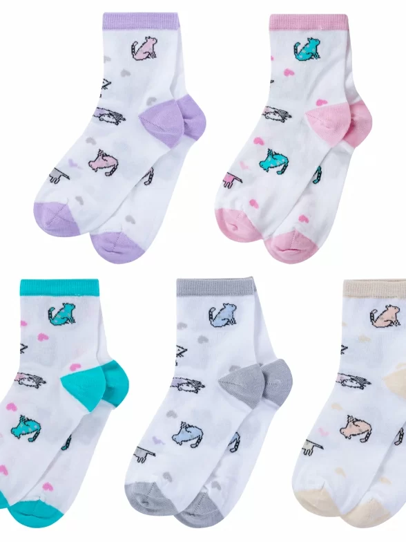 Комплект детских носков бренда LORENZline с милым принтом в виде котиков.