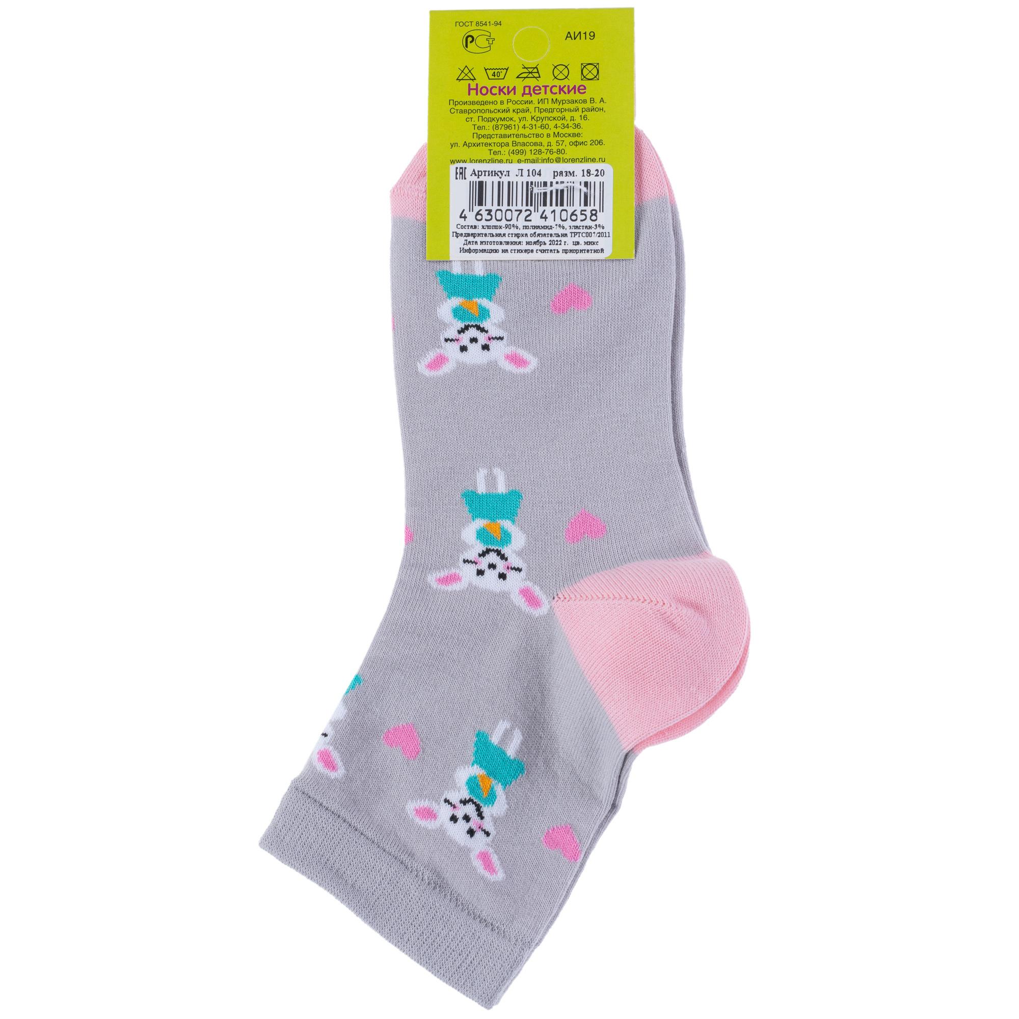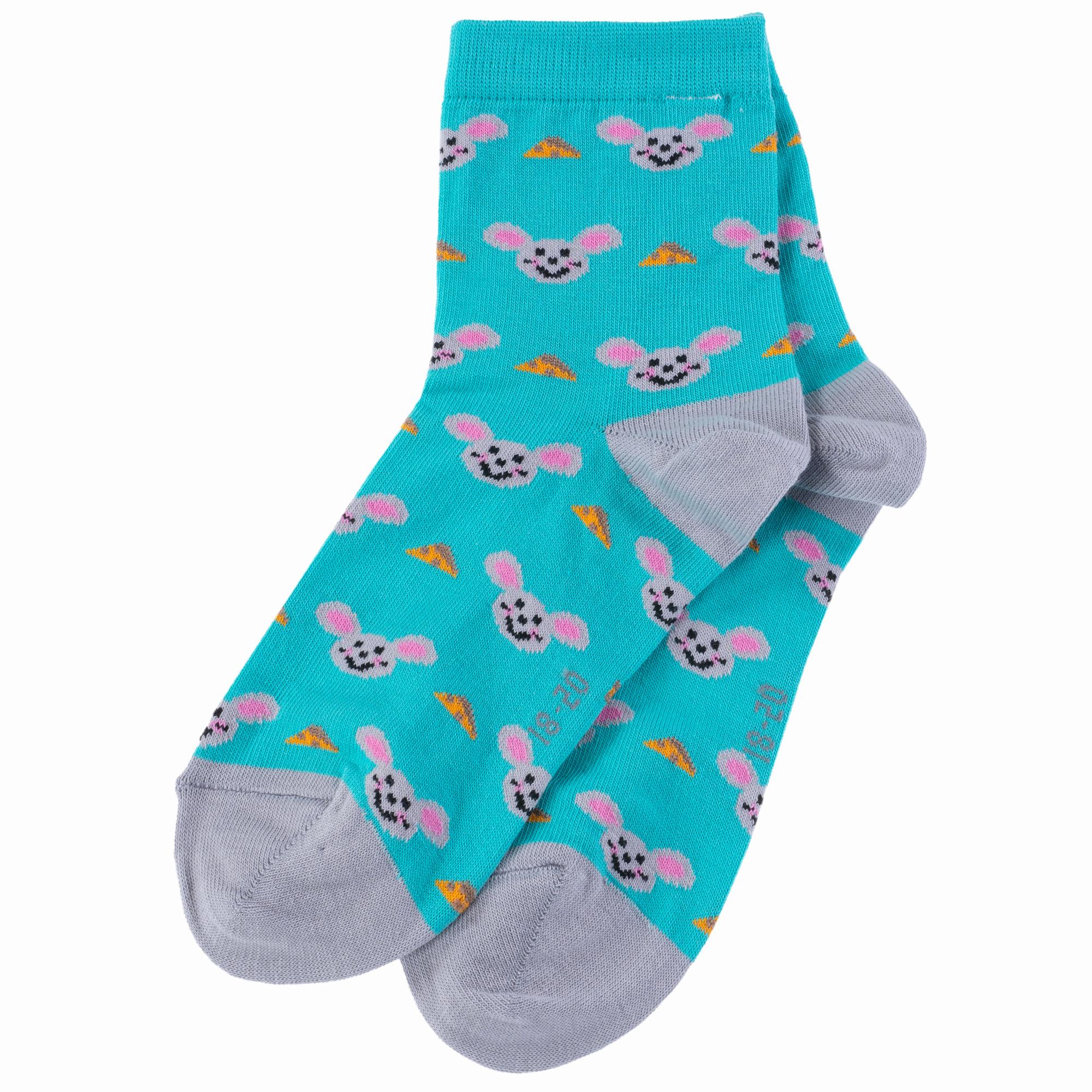 В комплект входят 5 пар носков арт. Л103: по 2 пары бирюзовых с мышками и сыром, серых в полоску с сердечками и 1 пара серо-розовых с мышками. Поставляются с индивидуальными фабричными этикетками в обычном или курьер-пакете.