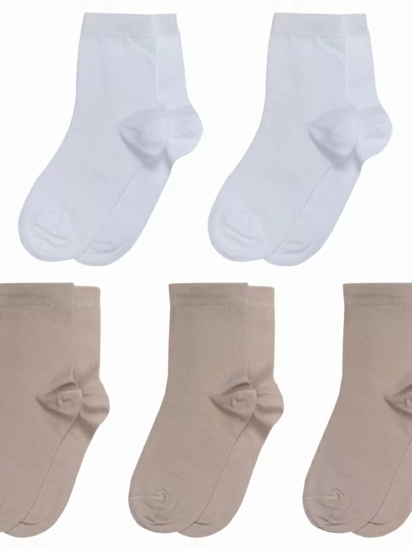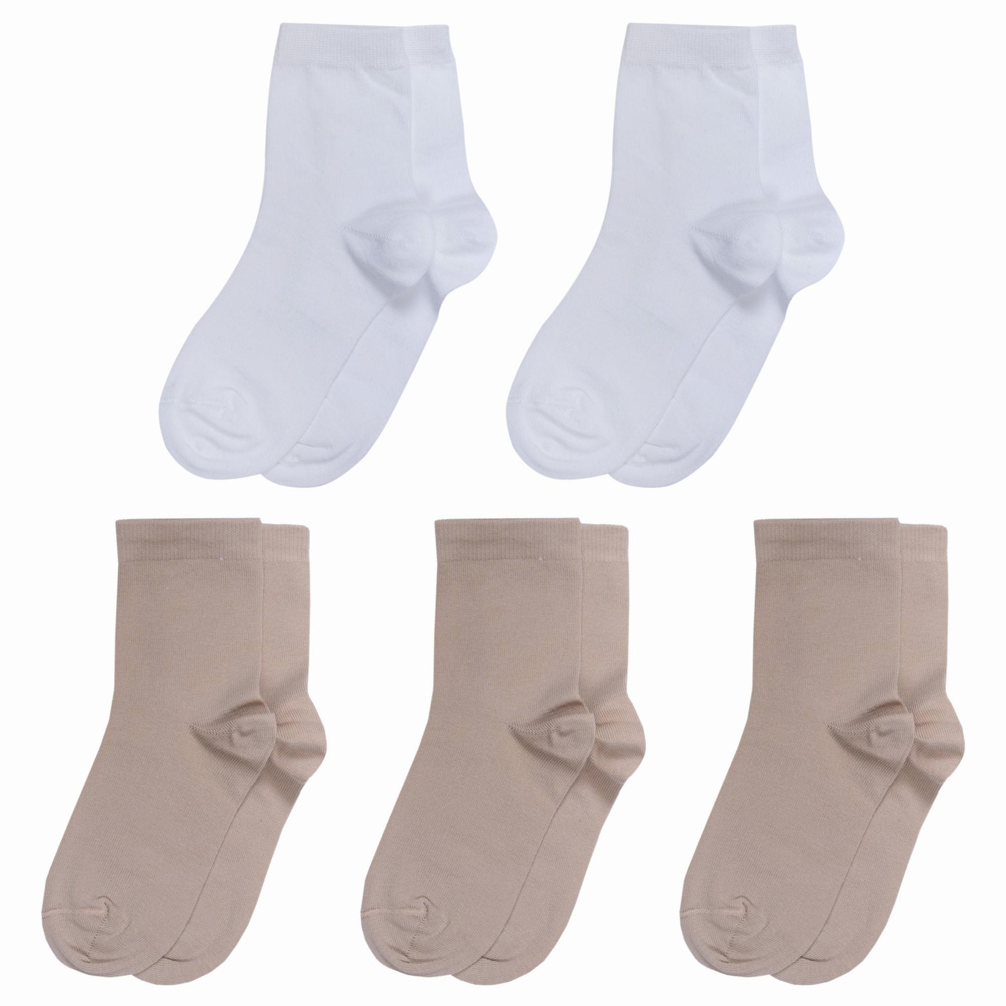 В комплект входят 5 пар с индивидуальными этикетками: 3 бежевых и 2 белых.