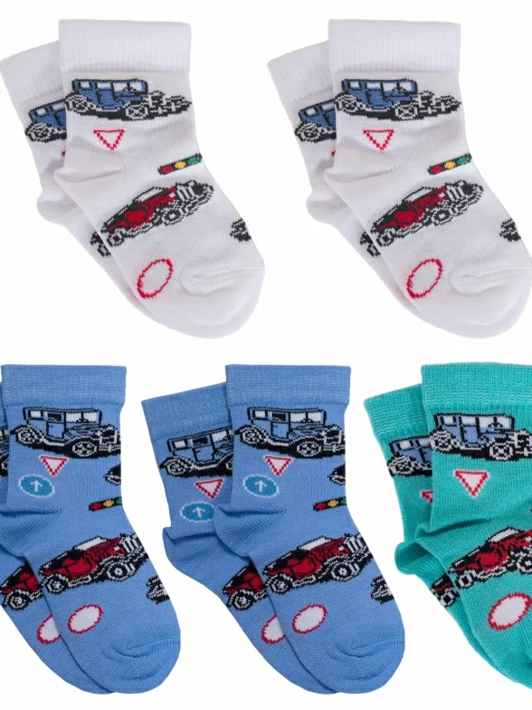 Комплект детских носков бренда LORENZline с принтом в виде машинок.