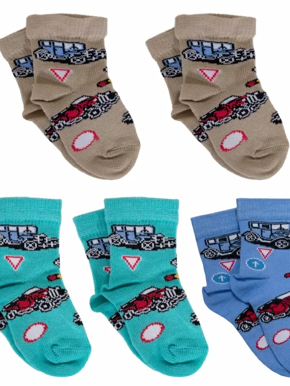 Комплект детских носков бренда LORENZline с принтом в виде машинок.