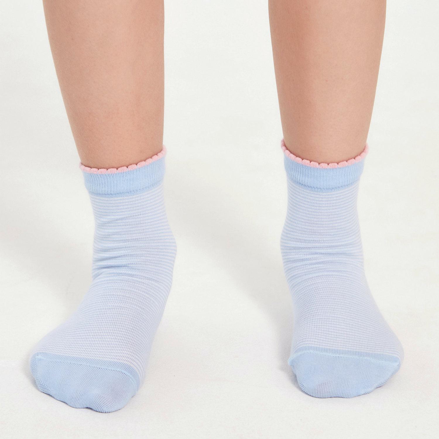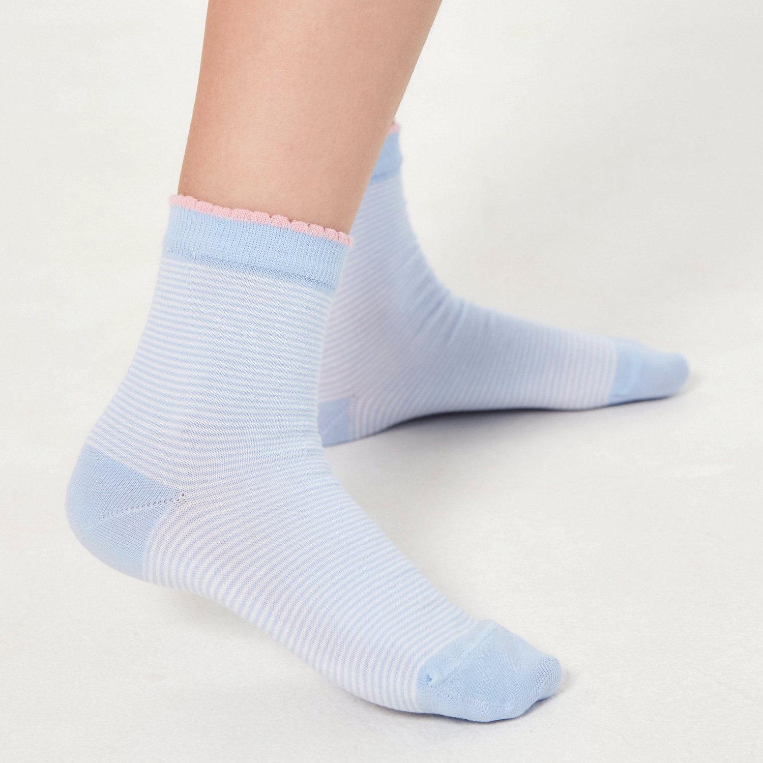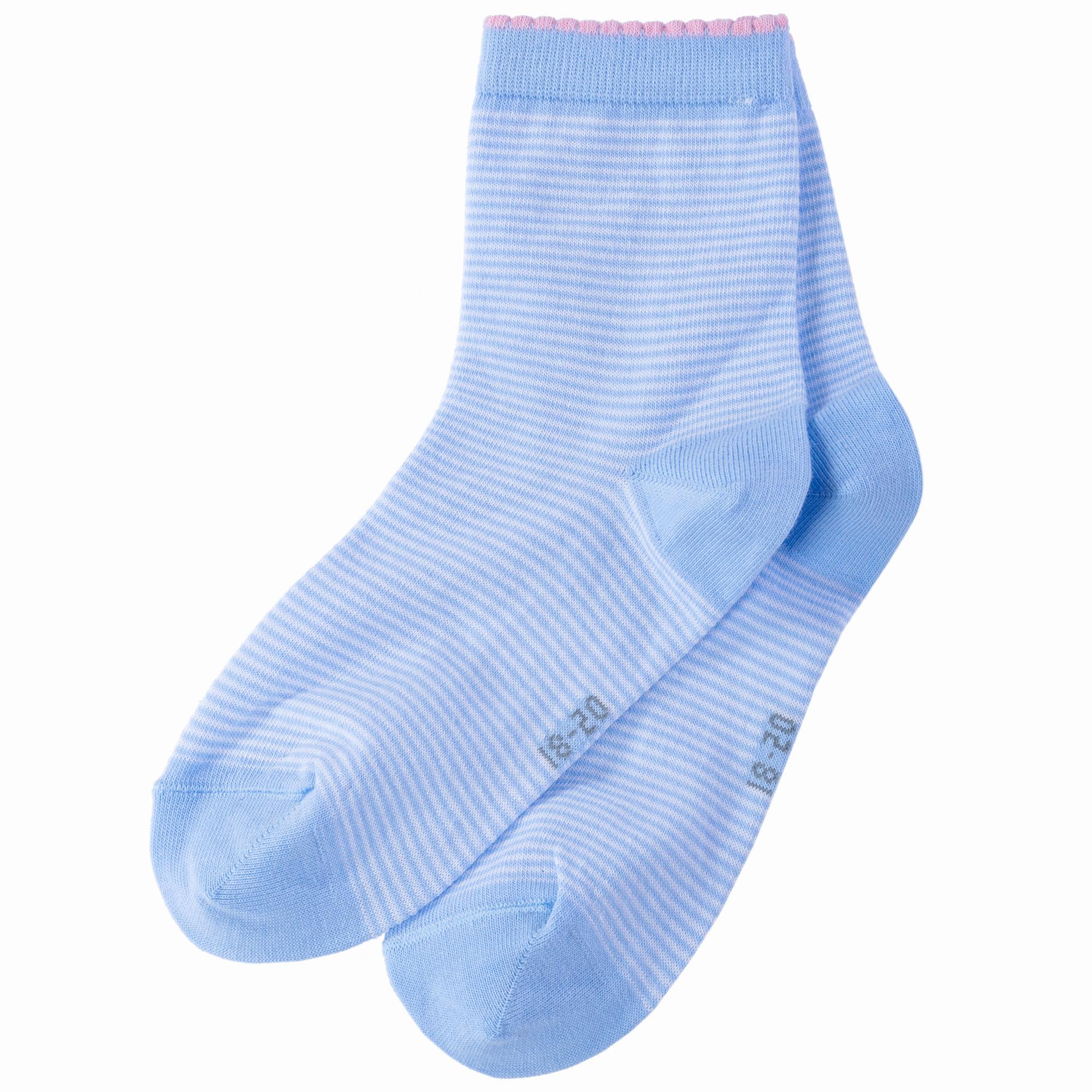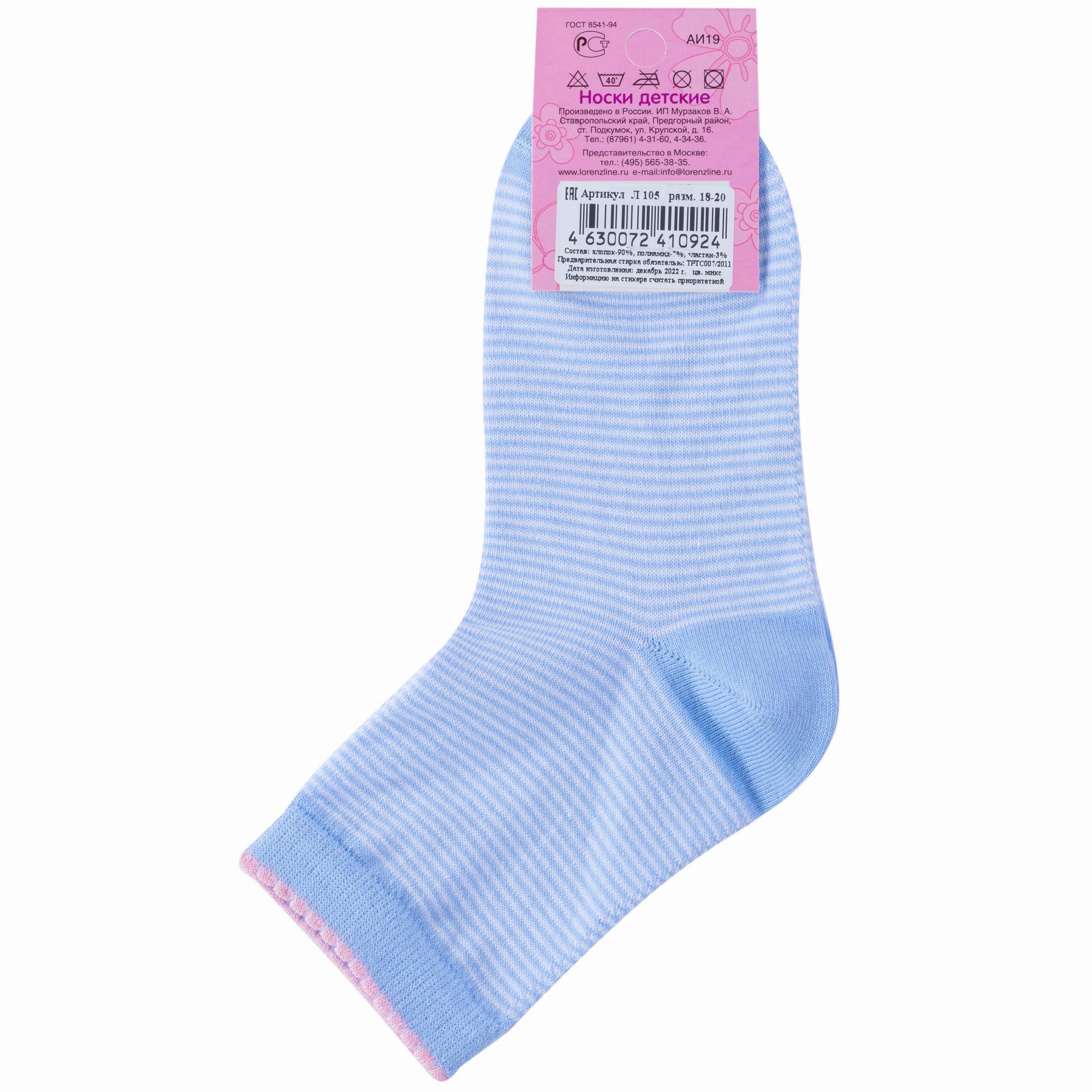 В комплект входит 5 пар носков артикула Л105: 2 пары голубого цвета в полоску, 2 пары бело-розового цвета и 1 пара серо-голубых в горошек. Поставляются с индивидуальными фабричными этикетками в обычном или курьер-пакете.
