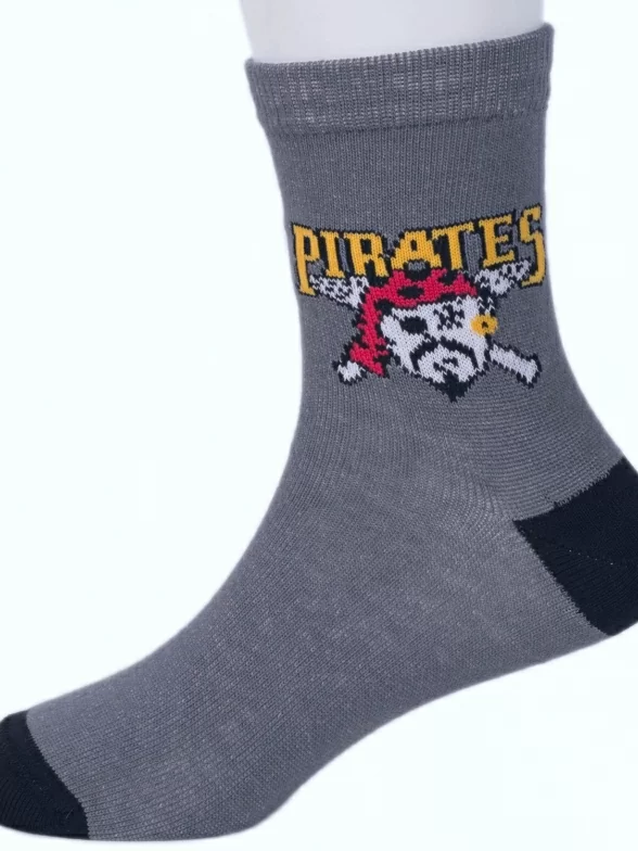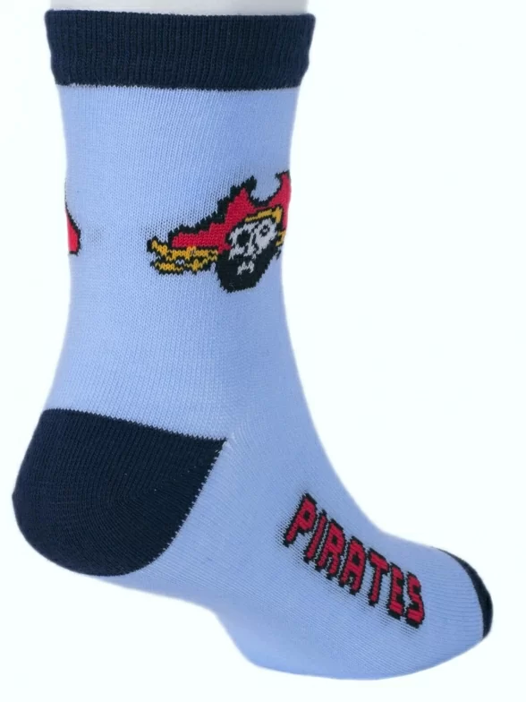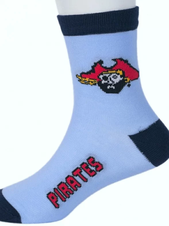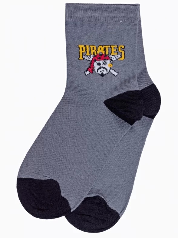 Комплект детских носков бренда LORENZline: с принтами в виде пиратов и надписей "Pirates". Подойдут мальчикам для прогулок, школы или детского сада в демисезонный период.