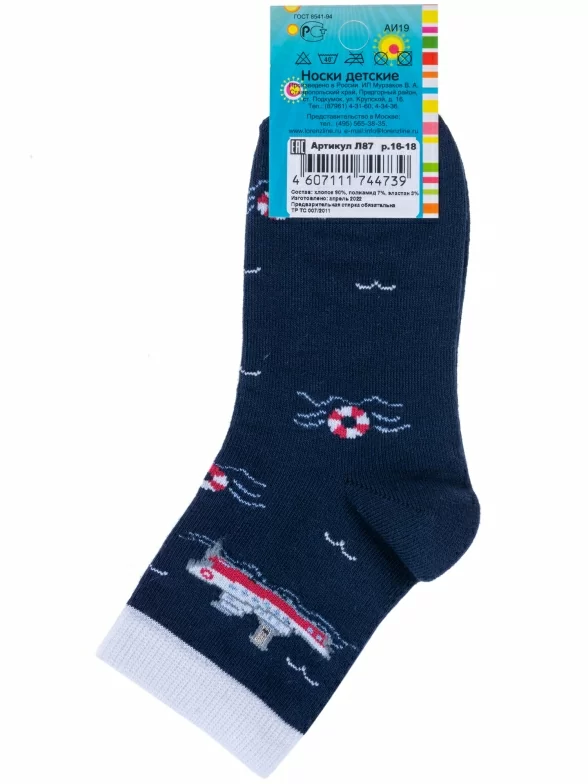 В комплект входят 3 пары темно-синих и 2 пары серых носков артикула Л87 с индивидуальными фабричными этикетками.