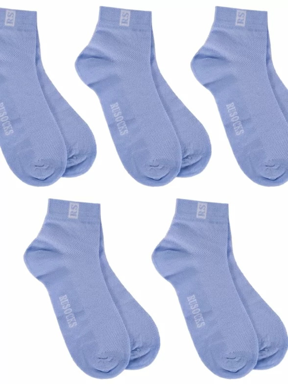 В комплект входят 5 пар носков голубого цвета с индивидуальными фабричными этикетками.