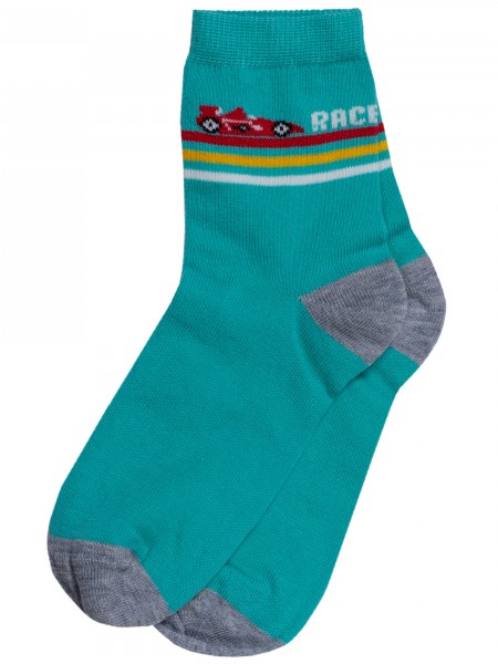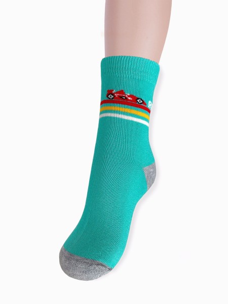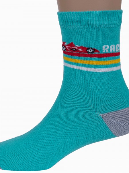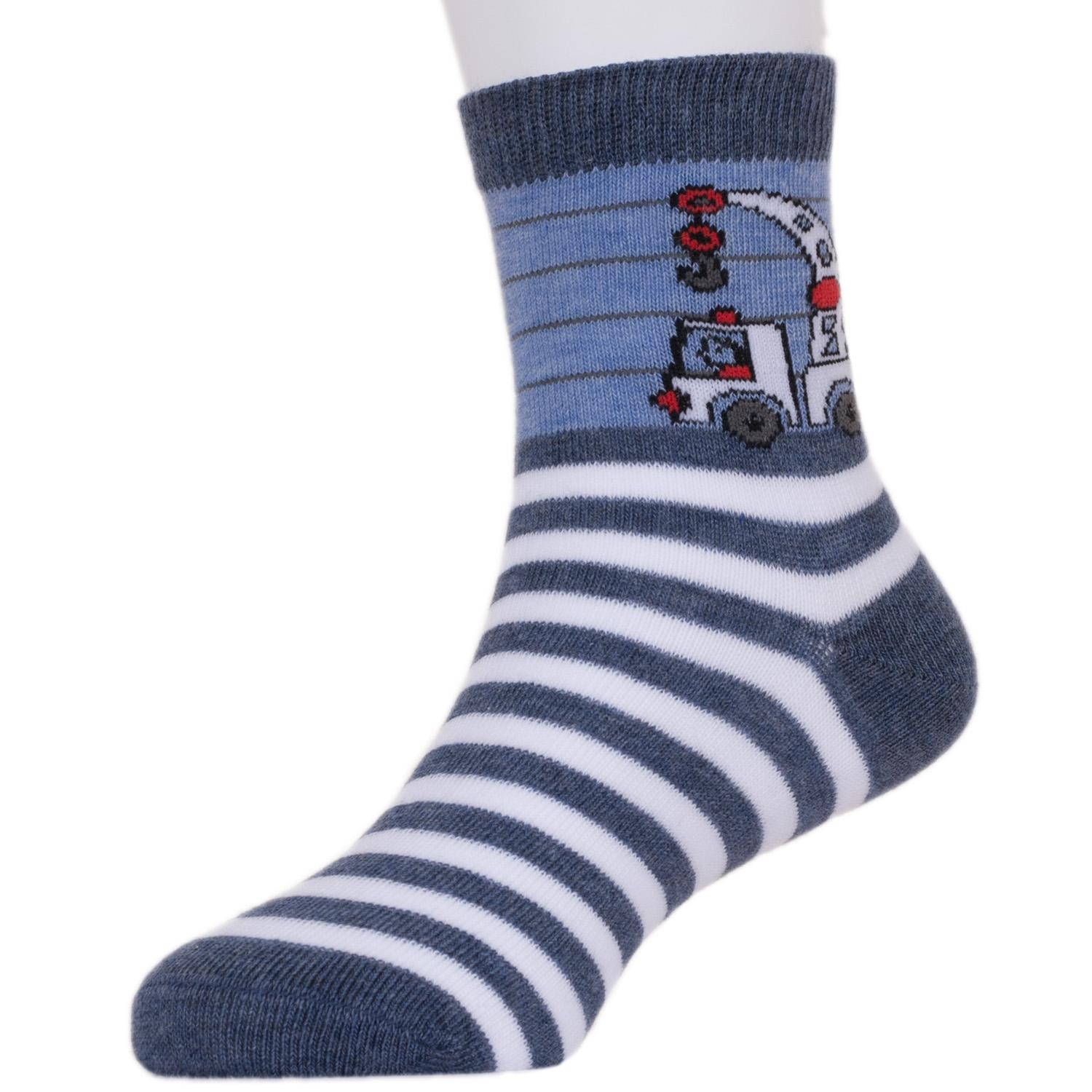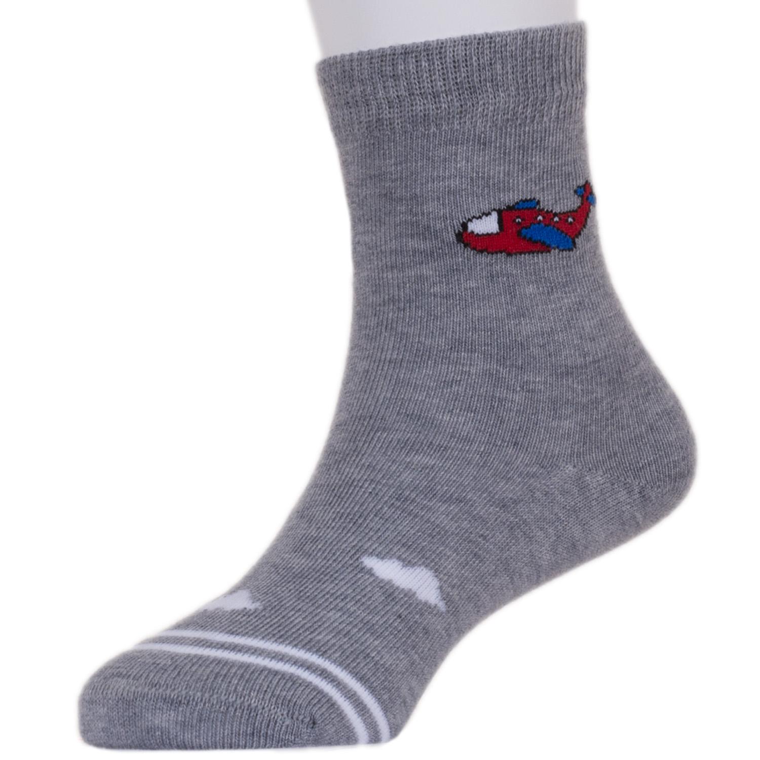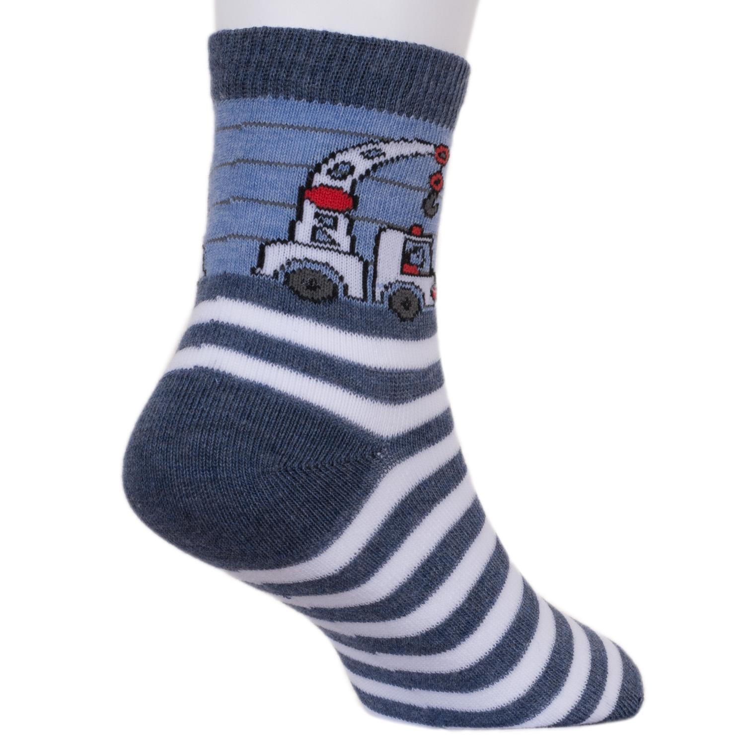 В комплект входят 5 пар носков с индивидуальными фабричными этикетками: 3 пары джинсового цвета с принтом в виде машинки и 2 серые пары с самолетиком.