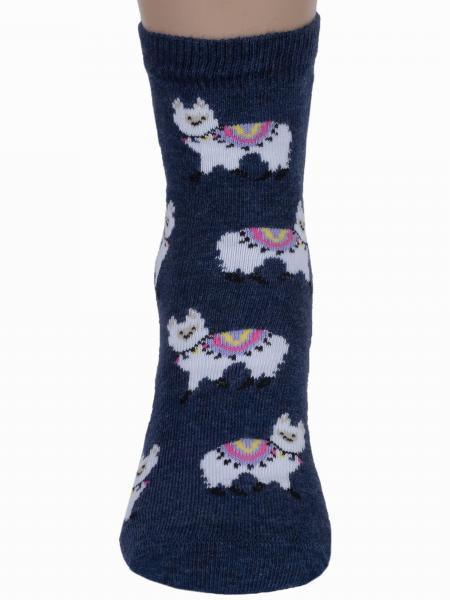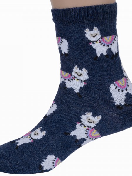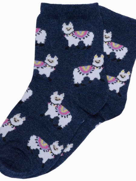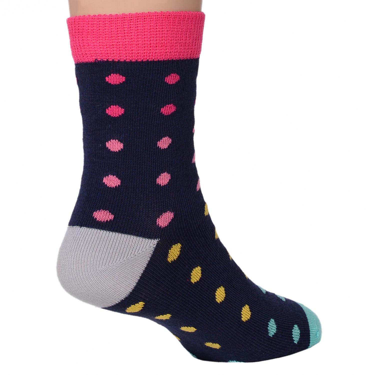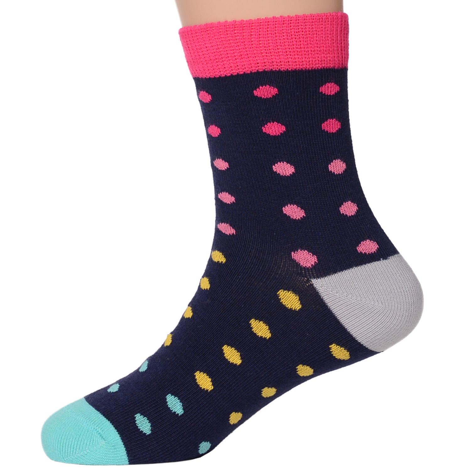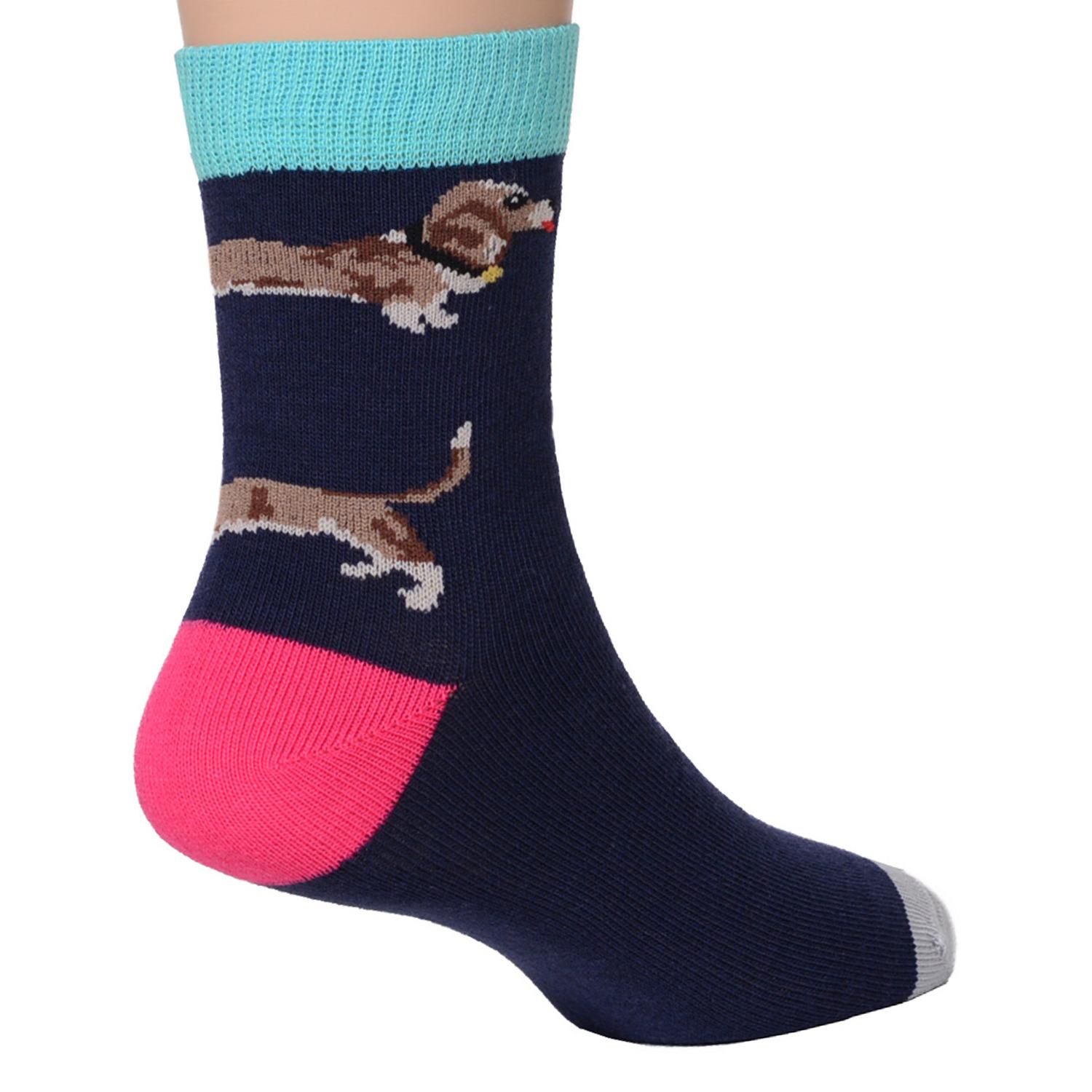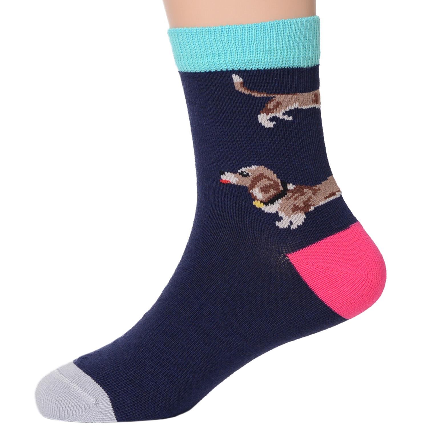 В комплект входят 5 пар носков темно-синего цвета с индивидуальными фабричными этикетками: 3 пары в разноцветный горох и 2 - с принтом в виде собачек.
