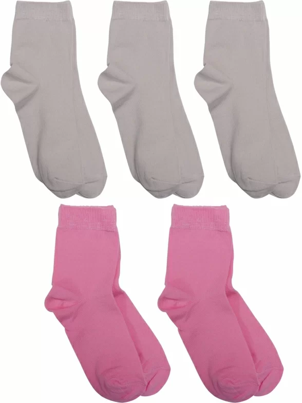В комплект входит 3 пары молочных и 2 пары ярко-розовых однотонных носков с индивидуальными фабричными этикетками.