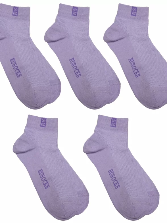 В комплект входят 5 пар носков светло-сиреневого с фиолетовым цвета с индивидуальными фабричными этикетками.