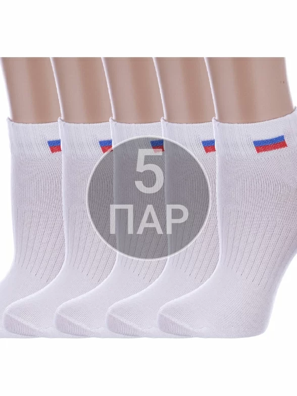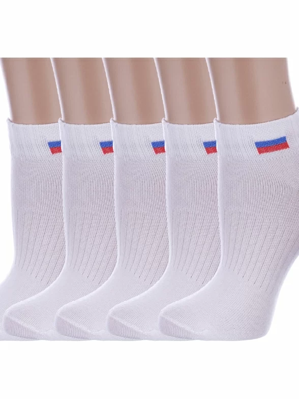Комплект детских носков из 5 пар, круглогодичные, укороченные, цвет белый, спортивные, состав: 80% хлопок, 18% полиамид, 2% эластан, арт. 5-С200. Производитель «ООО Альтаир, г. Орск, Оренбургская обл, Россия» под брендом «Альтаир».