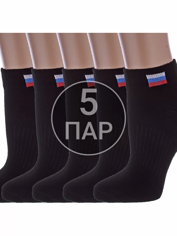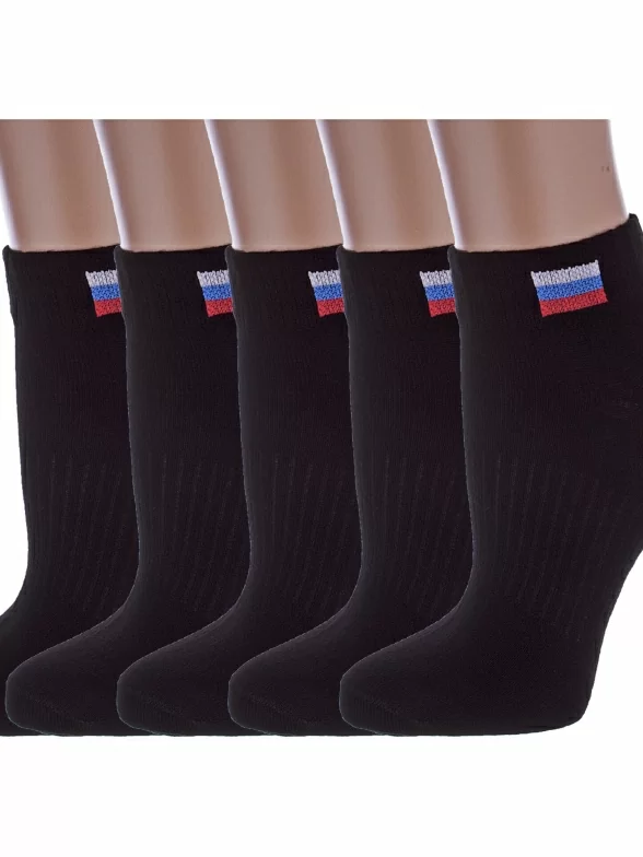 Комплект детских носков из 5 пар, круглогодичные, укороченные, цвет черный, спортивные, шов обычный (не бесшовные), принт (рисунок): однотонный, небольшой рисунок, состав: 80% хлопок, 18% полиамид, 2% эластан, арт. 5-С200. Производитель «ООО Альтаир, г. Орск, Оренбургская обл, Россия» под брендом «Альтаир».