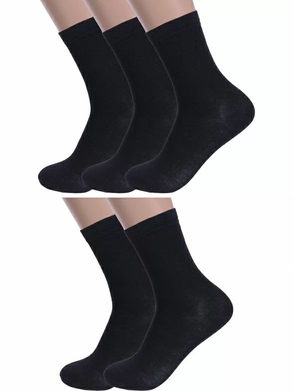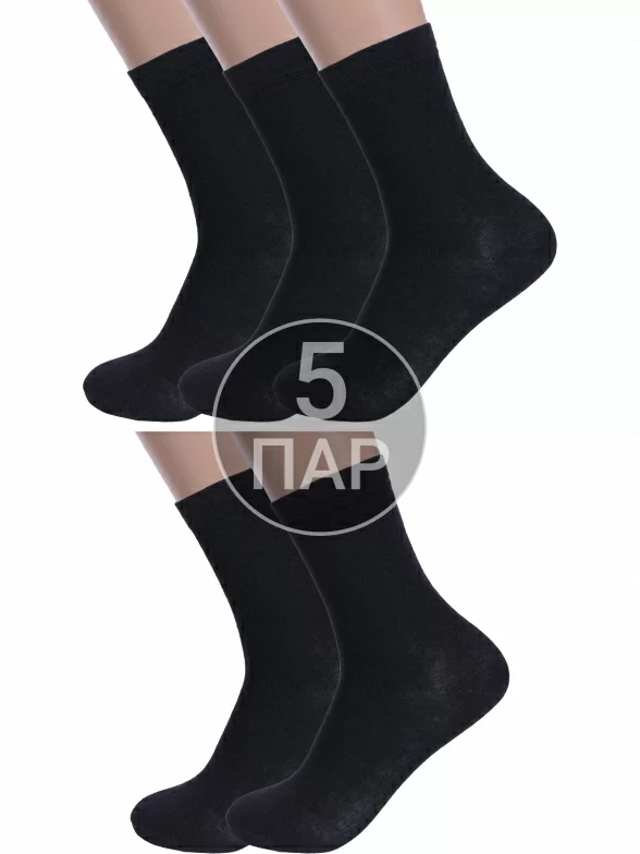 Комплект детских носков из 5 пар, круглогодичные, средней длины, цвет черный, классические, шов обычный (не бесшовные), принт (рисунок): однотонный, без рисунков / узоров, состав: 80% хлопок, 18% полиамид, 2% эластан, арт. 5-А94. Производитель «ООО Альтаир, г. Орск, Оренбургская обл, Россия» под брендом «Альтаир».