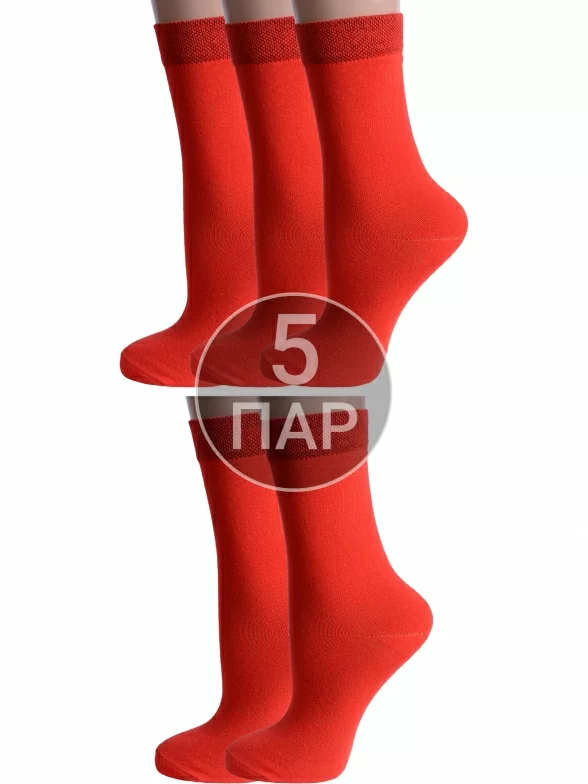 Комплект детских носков из 5 пар, круглогодичные, средней длины, цвет красный, классические, шов обычный (не бесшовные), принт (рисунок): без рисунков/узоров, однотонный, состав: 80% хлопок, 18% полиамид, 2% эластан, арт. 5-А94. Производитель «ООО Альтаир, г. Орск, Оренбургская обл, Россия» под брендом «Альтаир».