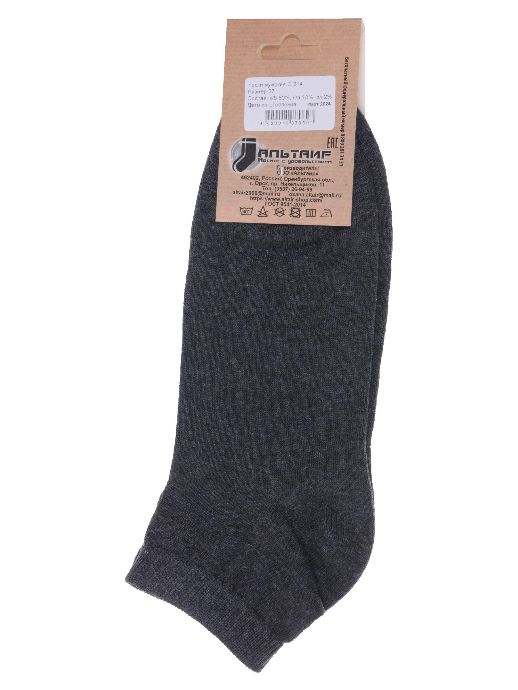 Комплект мужских носков из 5 пар, летние, короткие, цвет антрацит, классические, шов обычный (не бесшовные), принт (рисунок): без рисунков/узоров, состав: 80% хлопок, 18% полиамид, 2% эластан, арт. 5-О214. Производитель «ООО Альтаир, г. Орск, Оренбургская обл, Россия» под брендом «Альтаир».