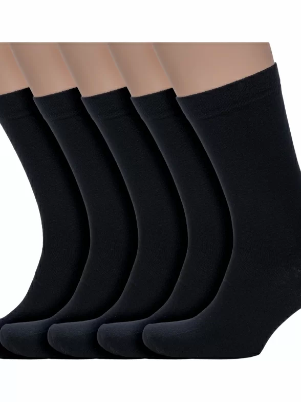 В комплект входят 5 одинаковых пар носков черного цвета арт. А206, поставляются с индивидуальными фабричными этикетками в обычном или курьер-пакете.