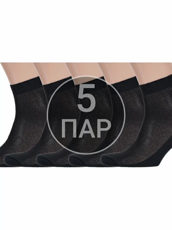 Комплект мужских носков из 5 пар, летние, укороченные, цвет черный, в сеточку, классические, шов обычный (не бесшовные), принт (рисунок): однотонный, состав: 75% хлопок, 25% полиамид, арт. 5-А43. Производитель «ООО Альтаир, г. Орск, Оренбургская обл, Россия» под брендом «Альтаир».