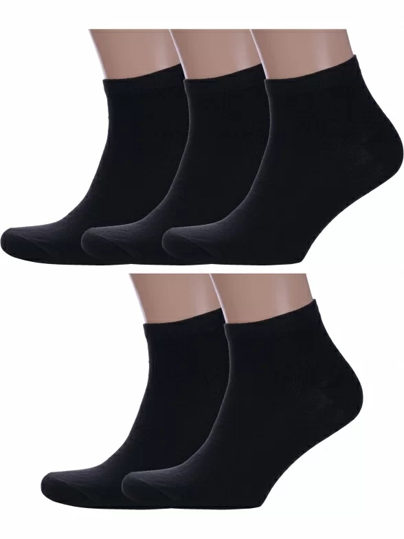 Комплект мужских носков из 5 пар, летние, короткие, цвет черный, классические, шов обычный (не бесшовные), принт (рисунок): без рисунков/узоров, состав: 80% хлопок, 18% полиамид, 2% эластан, арт. 5-О214. Производитель «ООО Альтаир, г. Орск, Оренбургская обл, Россия» под брендом «Альтаир».