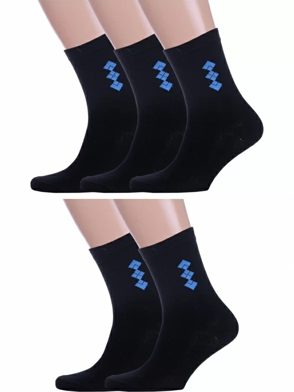 Комплект из 5 пар мужских носков Альтаир, 5-С45, ЧЕРНЫЕ с васильковым