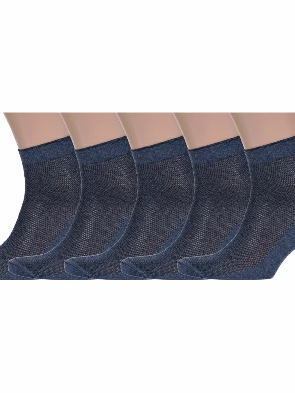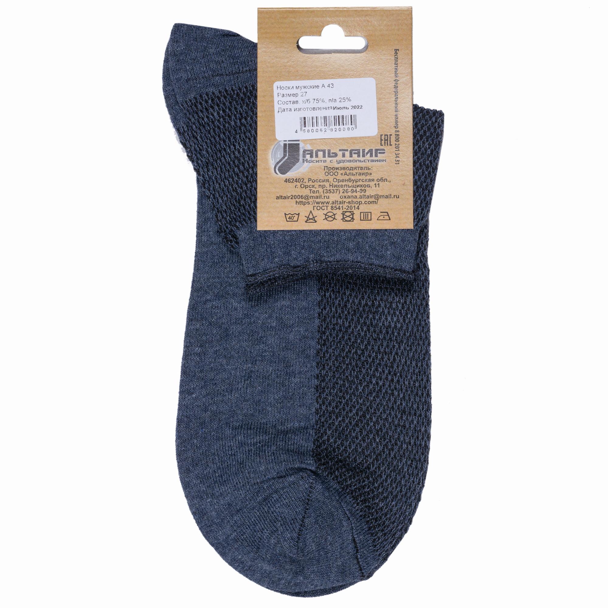 Комплект мужских носков из 5 пар, летние, укороченные, цвет синие, в сеточку, классические, шов обычный (не бесшовные), принт (рисунок): однотонный, состав: 75% хлопок, 25% полиамид, арт. 5-А43. Производитель «ООО Альтаир, г. Орск, Оренбургская обл, Россия» под брендом «Альтаир».