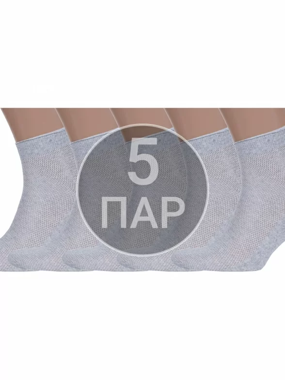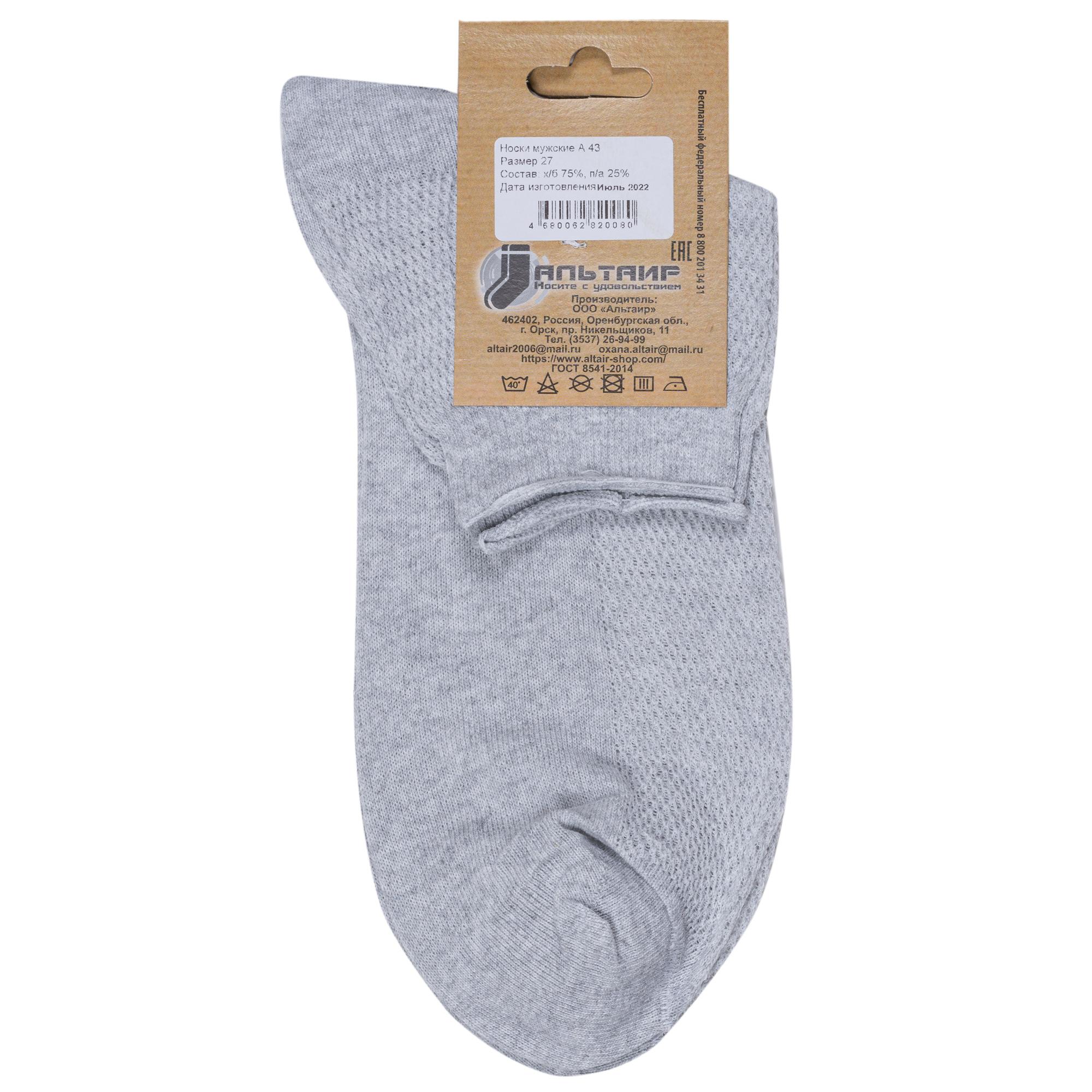 Комплект мужских носков из 5 пар, летние, укороченные, цвет светло-серый, в сеточку, классические, шов обычный (не бесшовные), принт (рисунок): однотонный, состав: 75% хлопок, 25% полиамид, арт. 5-А43. Производитель «ООО Альтаир, г. Орск, Оренбургская обл, Россия» под брендом «Альтаир».